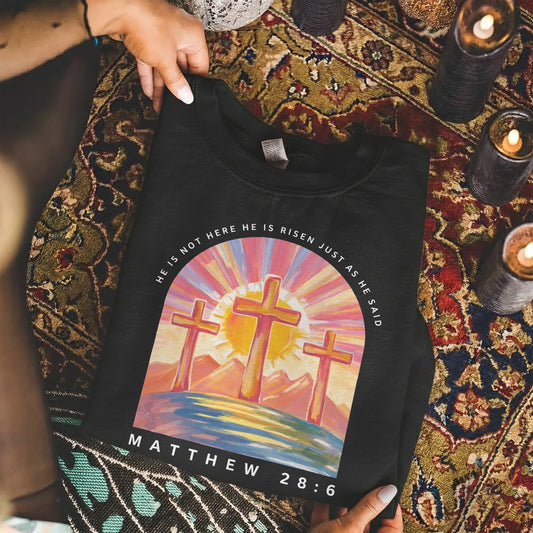 He Is Not Here Matthew 28:6 – He is Risen – Unisex Tshirt / Hoodie / Sweatshirt