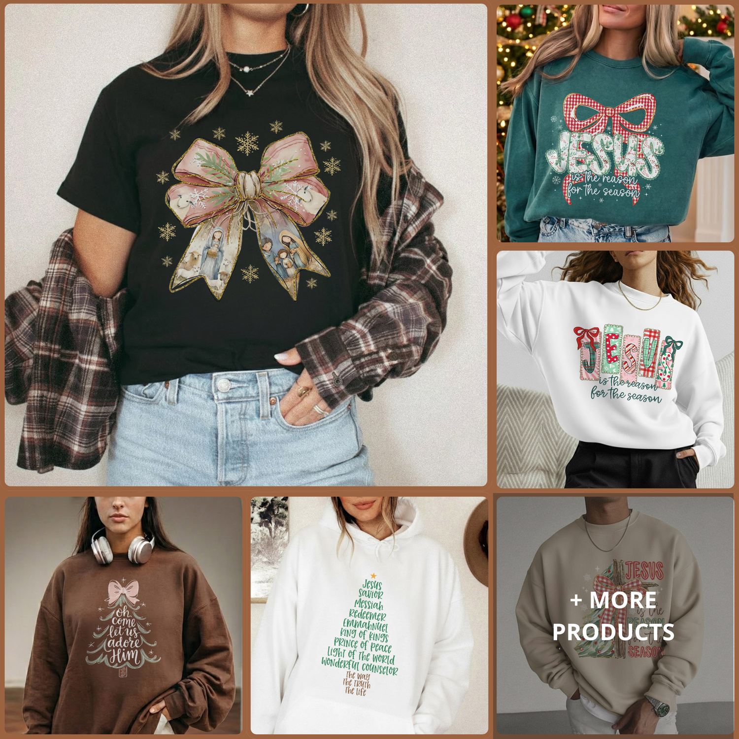 Jesus Christmas Coquette Bow - Merry Christmas - Unisex Tshirt / Hoodie / Sweatshirt