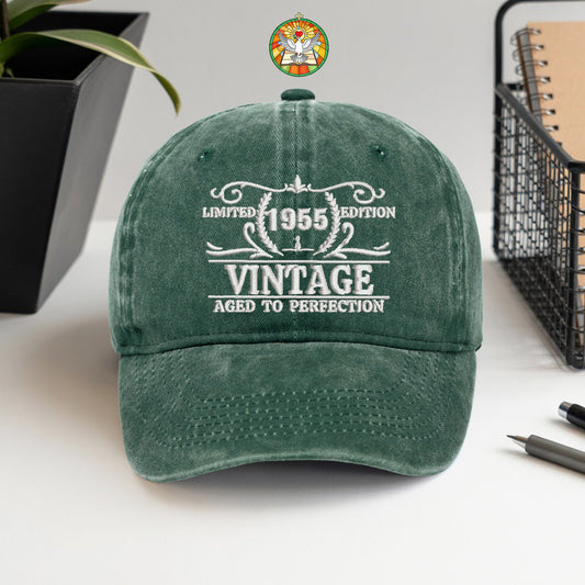 70th Birthday Gift Hat for Men & Women, Personalized Vintage 1955 "Aged to Perfection" Dad Cap with Custom Year