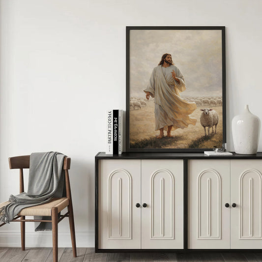 The Good Shepherd Jesus Christ Walking with His Flock Poster/Canvas