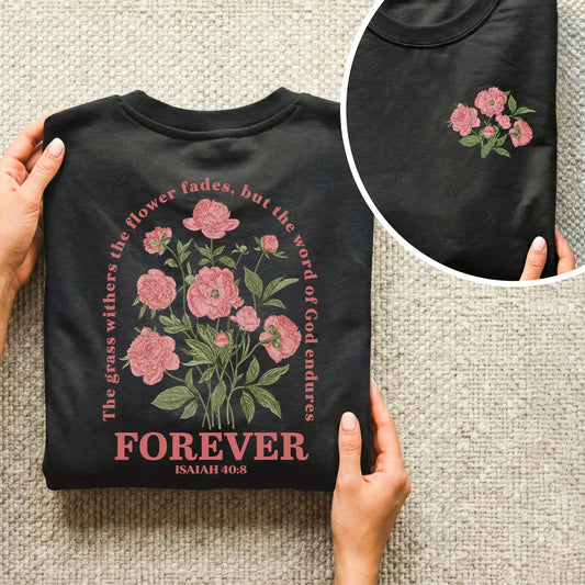 The Word of God Endures Forever Floral Scripture Design - Two Sides - Faith Floral - Unisex Tshirt / Hoodie / Sweatshirt