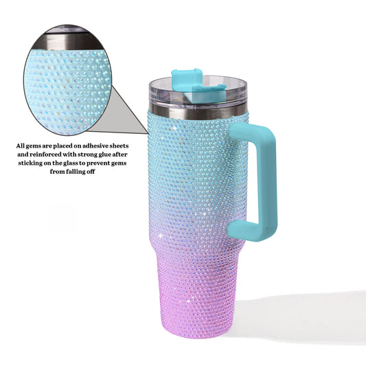 Blue Pink Gradient Bling Diamond Tumbler 40oz - Sparkling Ombre Dreams Rhinestone Cup