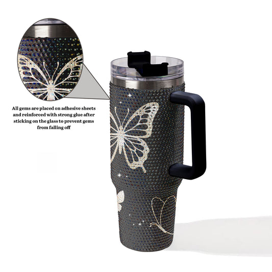 Butterfly Black Bling Diamond Tumbler 40oz - Sparkling Transformation Rhinestone Cup