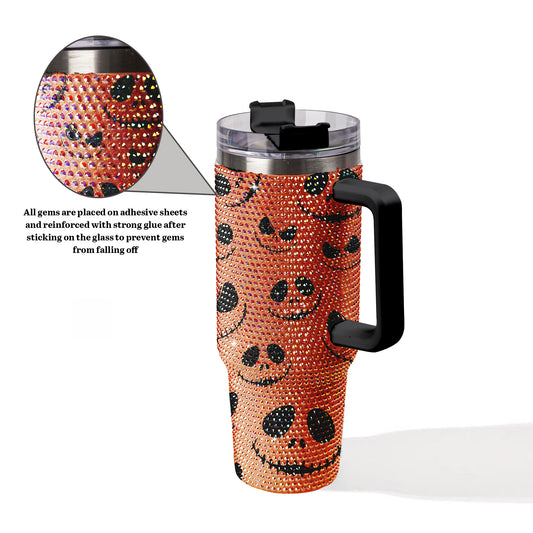 Pumpkin Halloween Bling Diamond Tumbler 40oz - Sparkling Spooky Rhinestone Cup