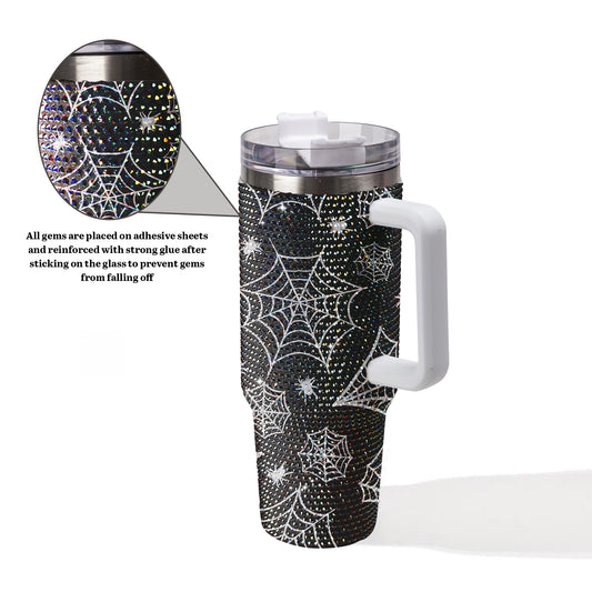 Spider Halloween Diamond Tumbler 40oz - Sparkling Spooky Rhinestone Cup