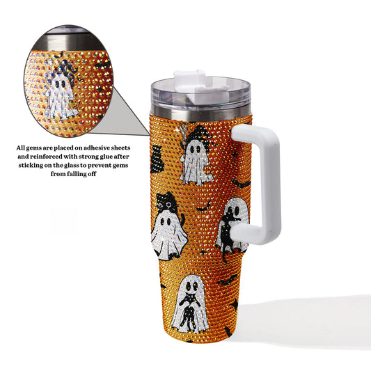 Ghost Halloween Bling Diamond Tumbler 40oz - Sparkling Spooky Rhinestone Cup