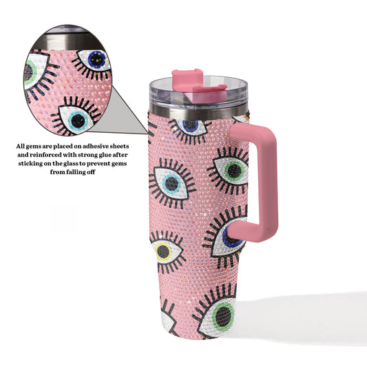 Evil Eye Pink Bling Diamond Tumbler 40oz - Sparkling Protection Rhinestone Cup