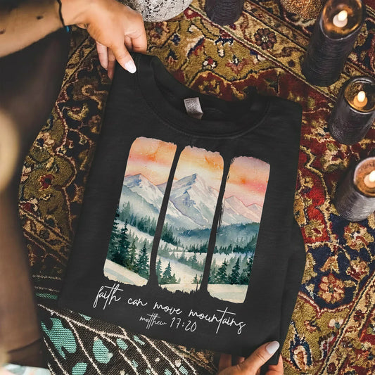 Faith Can Move Mountains Scripture Landscape Design – Landscape of Creation – Unisex Tshirt / Hoodie / Sweatshirt