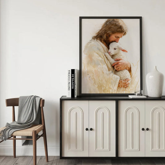 Jesus And The Lost Sheep Poster/Canvas