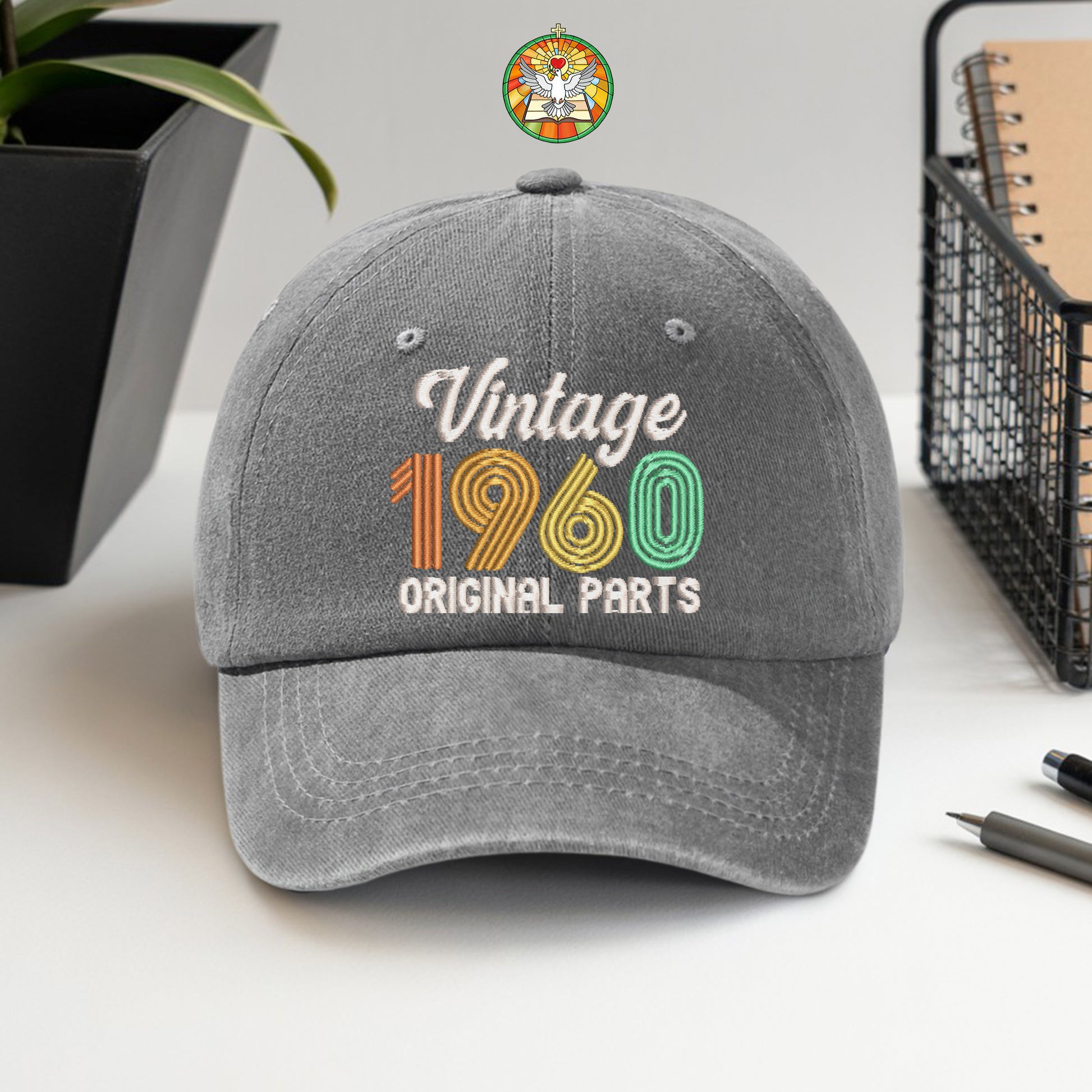 Honor a true classic with this funny and stylish vintage hat! Featuring a vibrant, retro-colored "Vintage 1960 - Original Parts" embroidery, it's the perfect gift to celebrate a 65th birthday with a sense of humor.