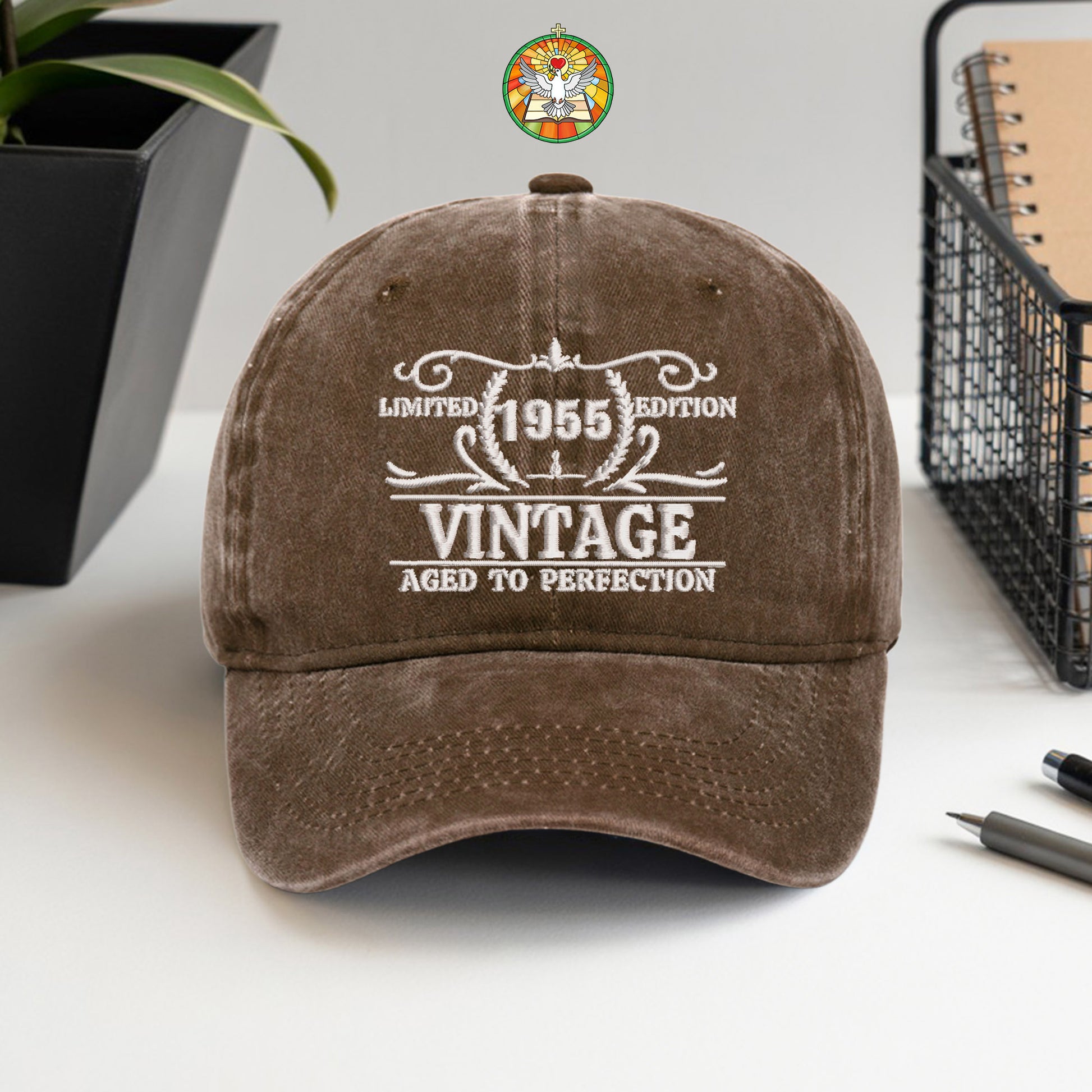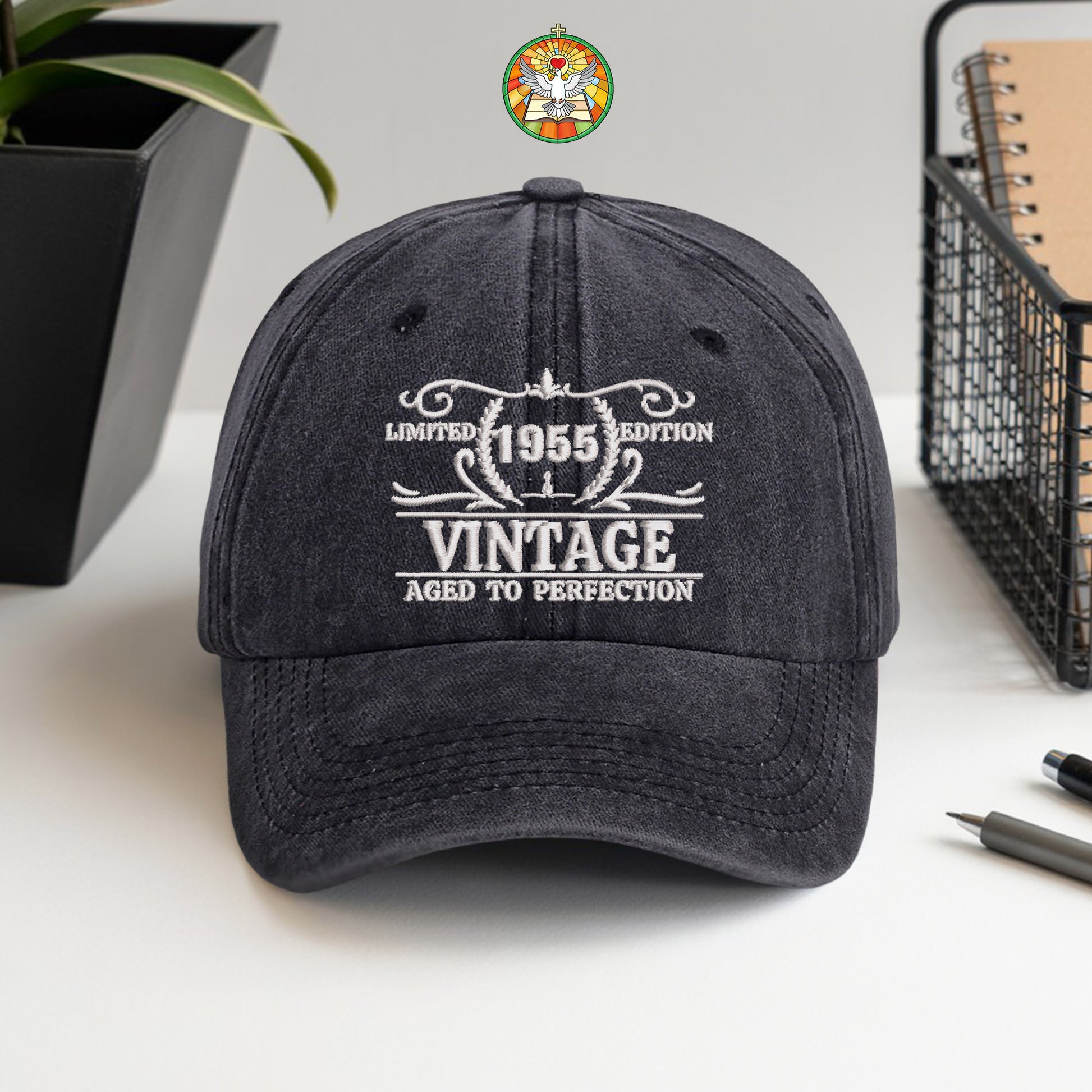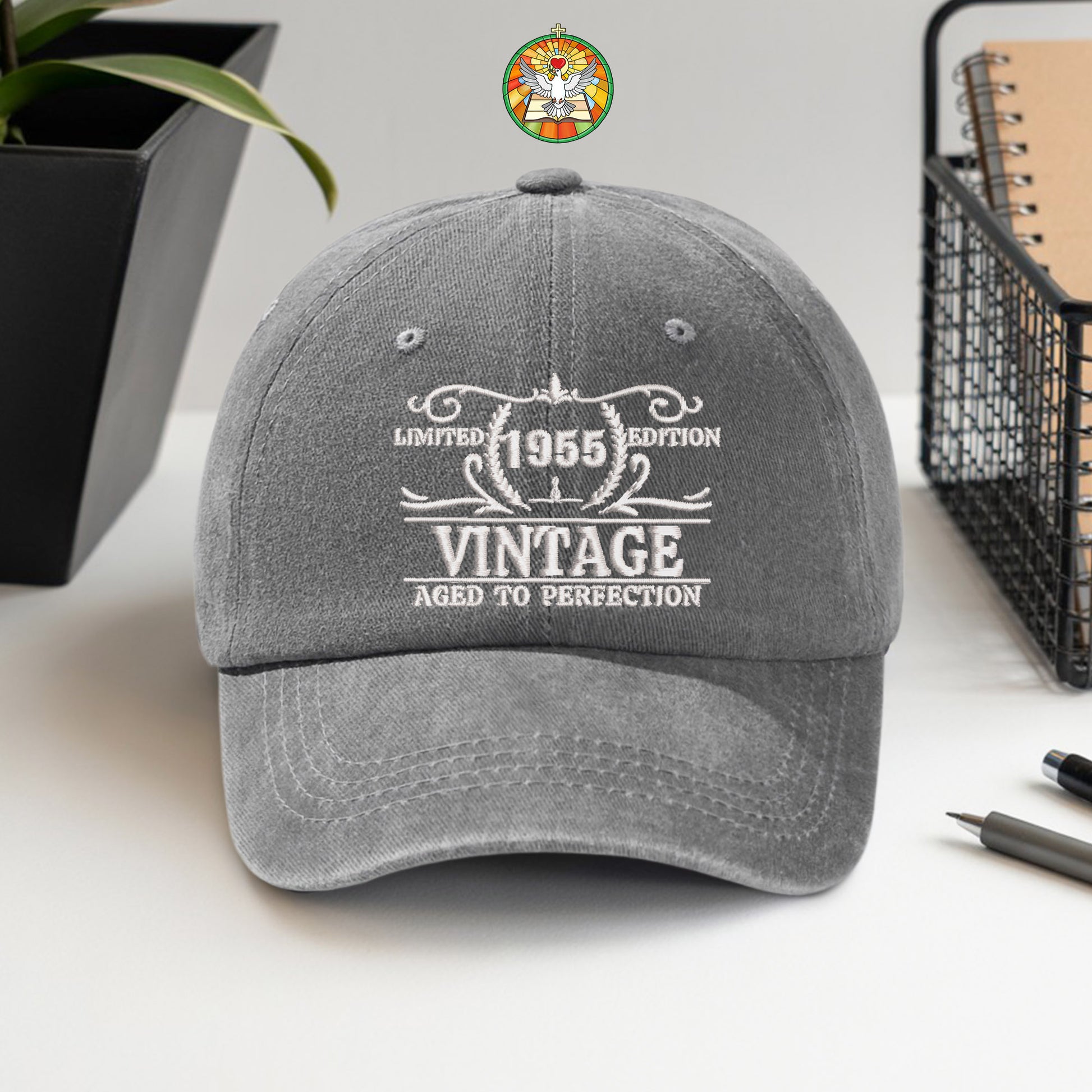 Celebrate a 70th milestone with a gift that's as timeless and classic as they are. This premium dad hat features an ornate, beautifully detailed "Limited Edition - Vintage 1955 - Aged to Perfection" design, giving it a truly distinguished look.