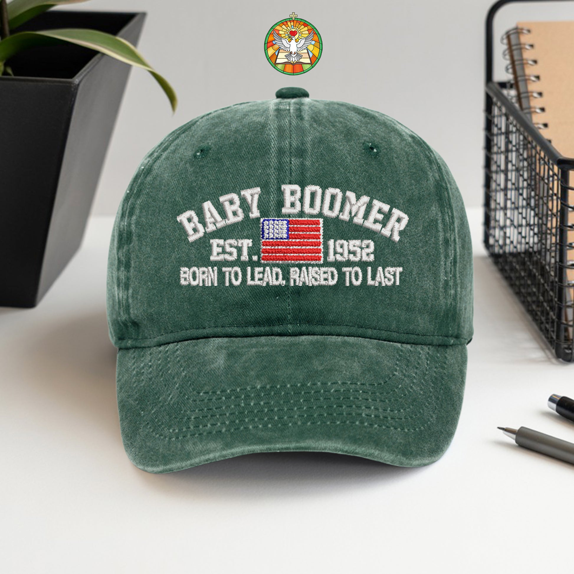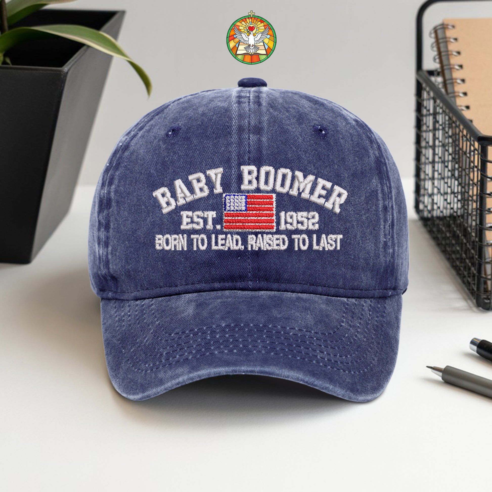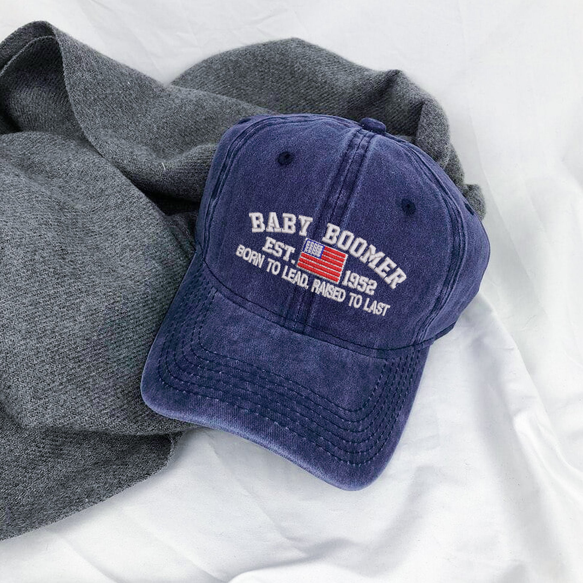 Honor the legacy of the Baby Boomer generation with this classic black cap, featuring a customizable "Est. [Your Year]" embroidery alongside the iconic American flag and the inspirational slogan “Born to Lead, Raised to Last.” This cap lets you personalize the founding year to commemorate a special birthdate, milestone, or family heritage, making it a unique keepsake. Combining vintage style with personal meaning, this hat celebrates American values and tradition—perfect for those who cherish their roots and want to showcase their story with pride.