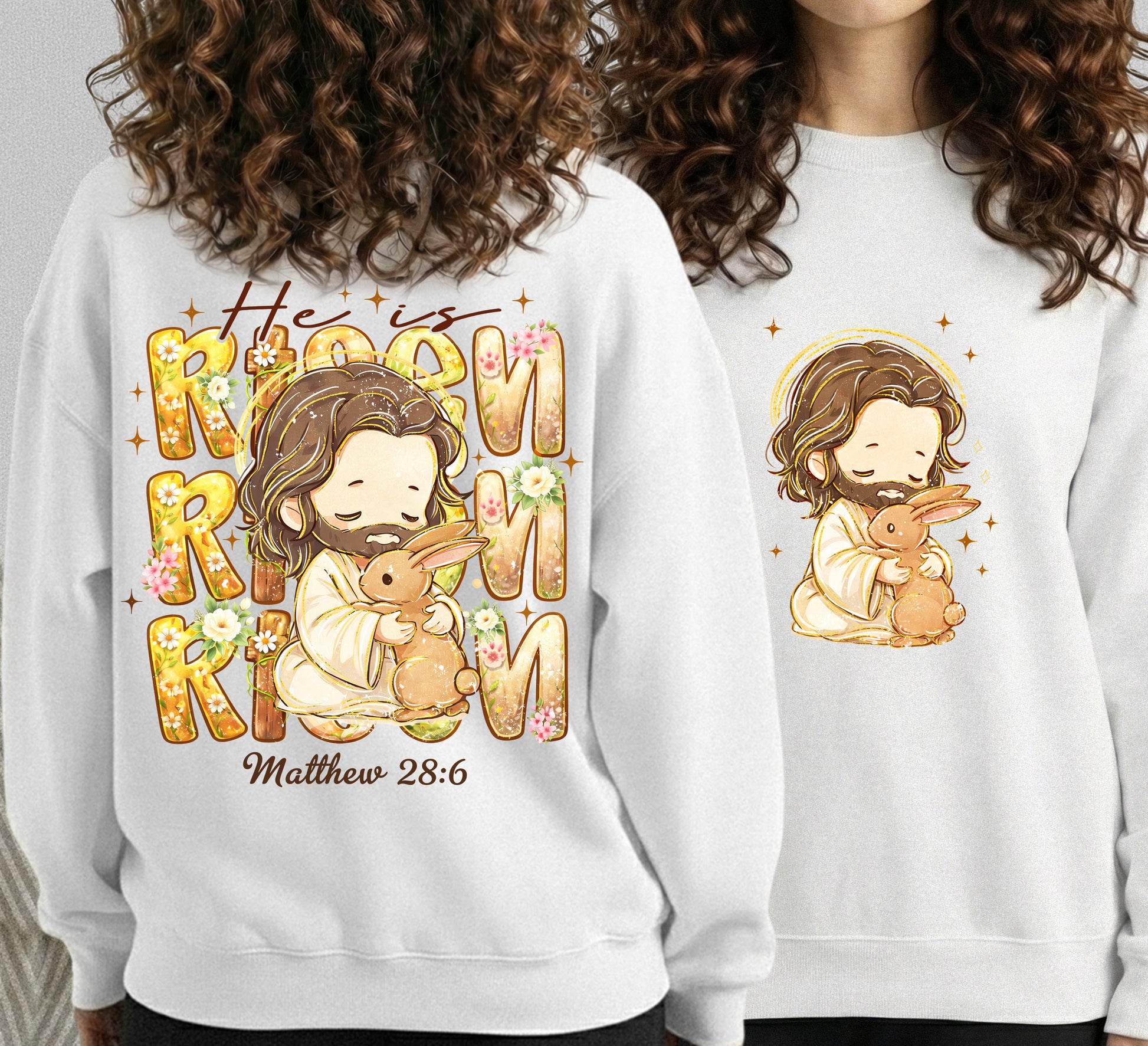 Chibi Jesus And Rabbit Matthew 28:6 - Two Sides - He is Risen - Unisex Tshirt / Hoodie / Sweatshirt