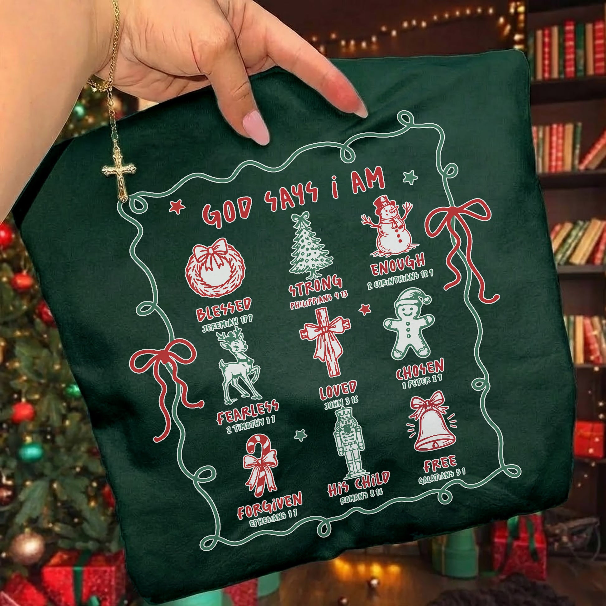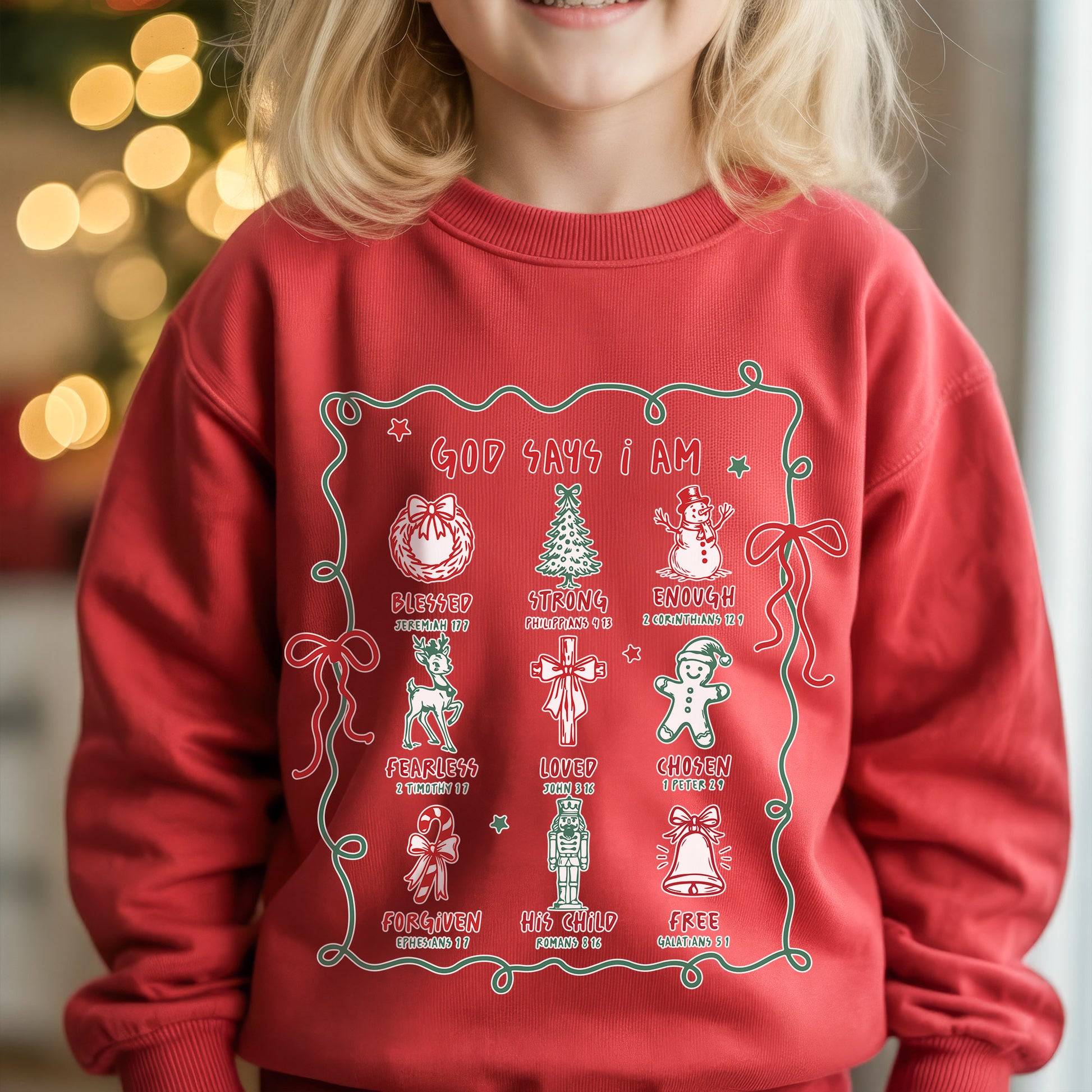 Celebrate the season with this cozy God Says I Am – Christmas Edition sweatshirt.