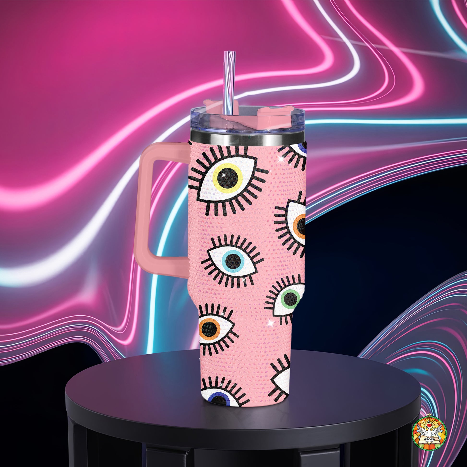 When you want to carry protection and positive energy with you everywhere, there's nothing more powerful than our Evil Eye Pink Diamond Tumbler. This isn't just drinkware—it's a sparkling talisman of protection and good vibes, designed to ward off negative energy while bringing mystical sparkle to every sip.