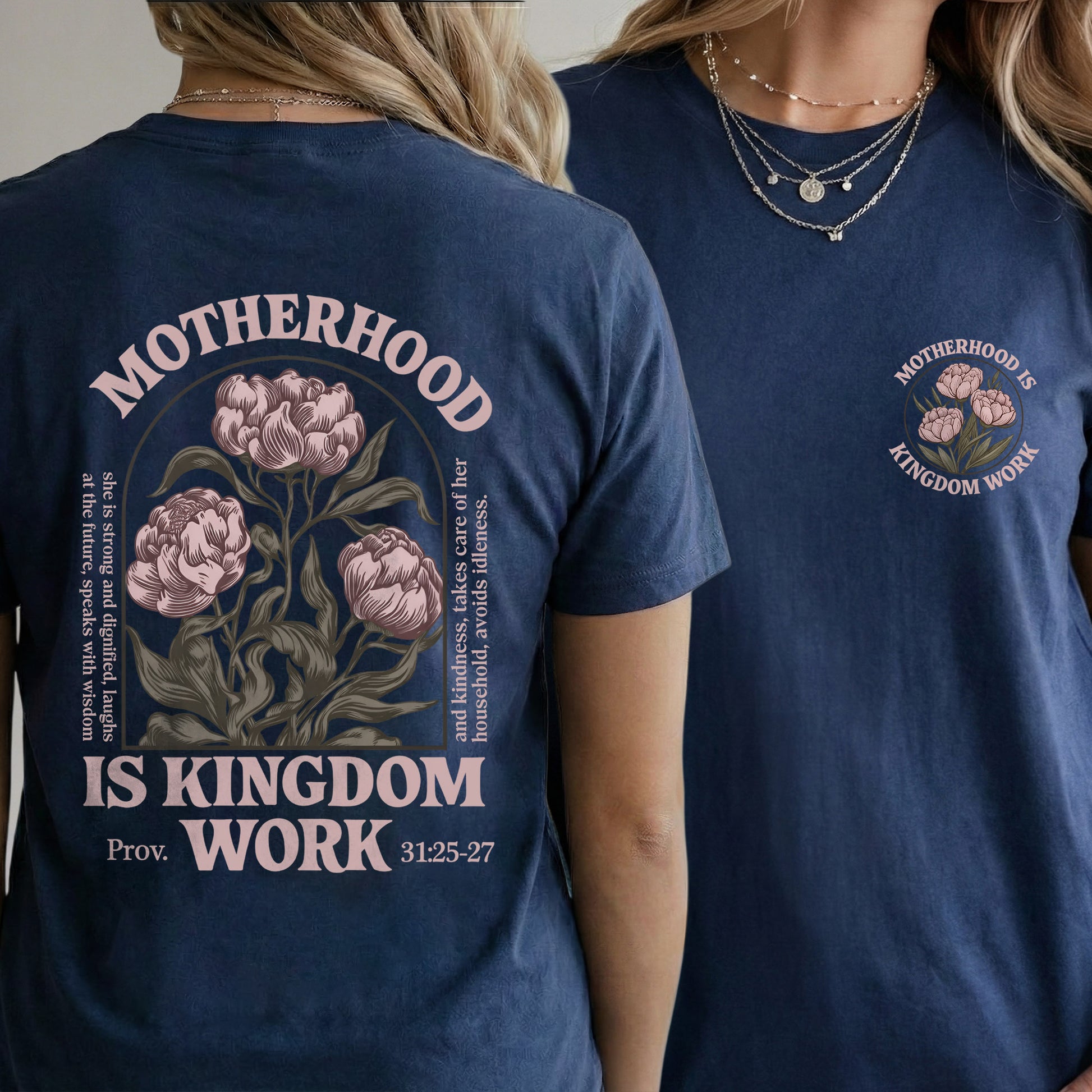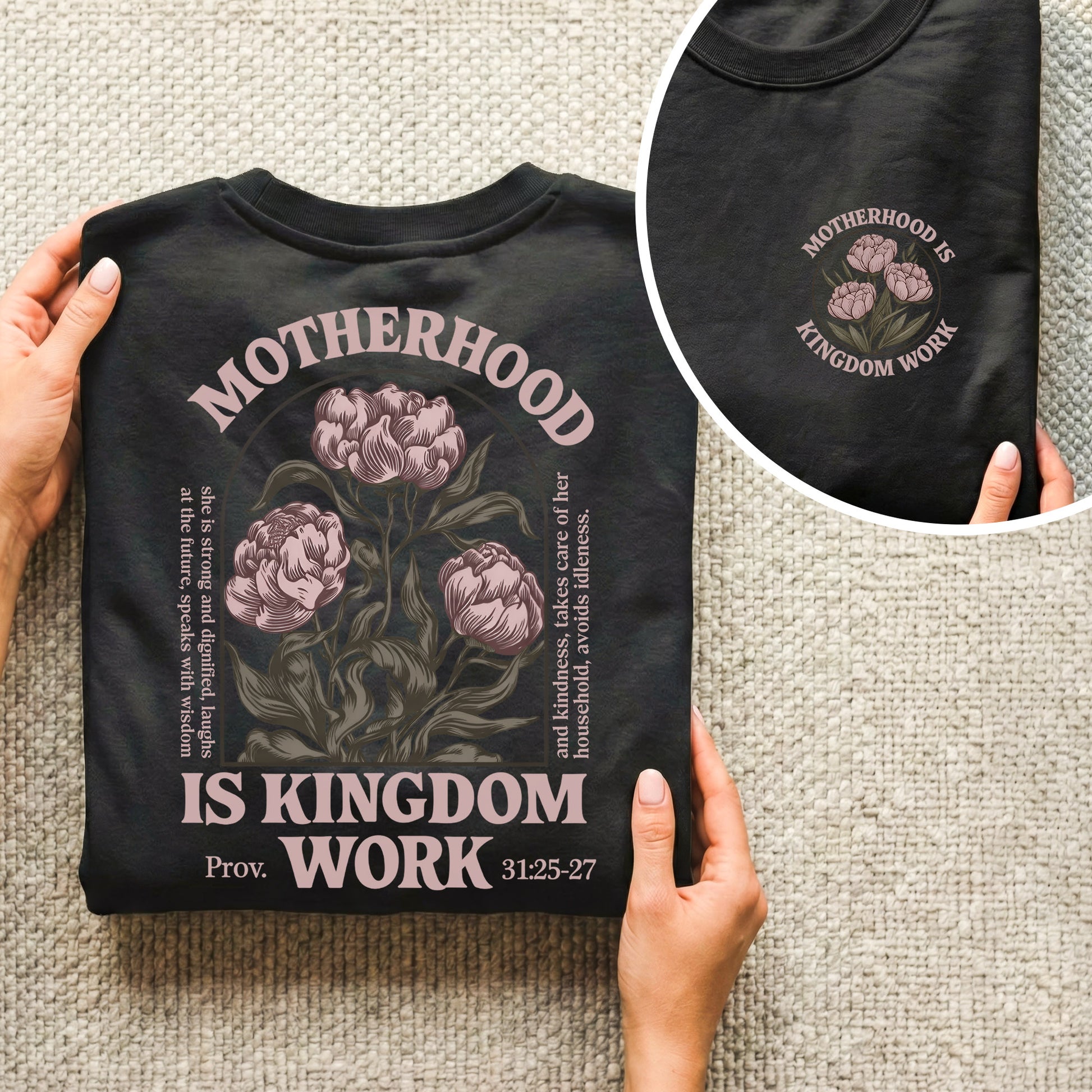 Floral Motherhood is Kingdom Work with Bible Verse – Two Sides – She is Bless – Unisex Tshirt /Hoodie/Sweatshirt