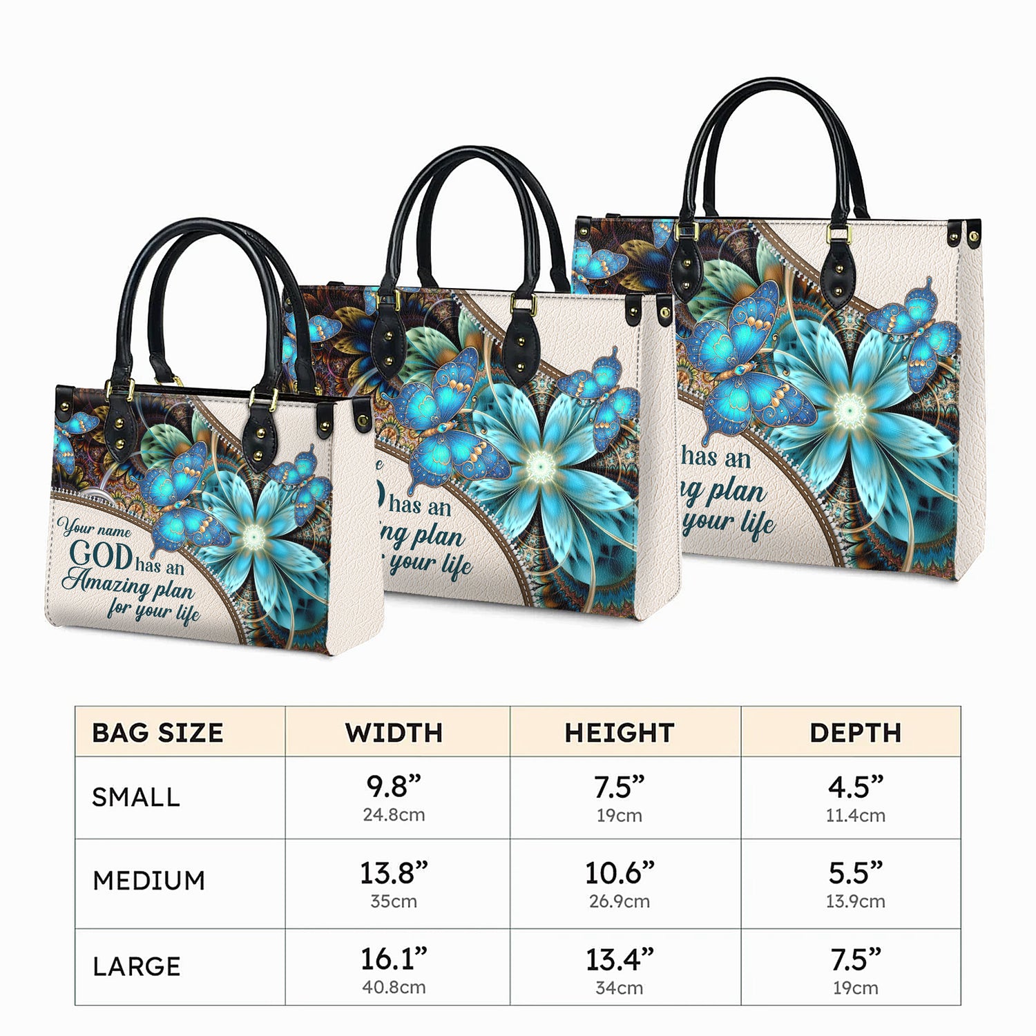 Trust in divine purpose and embrace hope for your future with our "God Has An Amazing Plan For Your Life" Personalized Leather Handbag. This breathtaking masterpiece features stunning turquoise butterflies and intricate floral designs that dance across a sophisticated cream and brown backdrop, creating a visual symphony of transformation, beauty, and divine artistry that mirrors God's incredible attention to detail in crafting each person's unique journey. The elegant butterflies symbolize the metamorphosis that occurs when we surrender our plans to God's perfect will, while the ornate patterns remind us that even the most complex seasons of our lives are woven together by a loving Creator who sees the beautiful tapestry from beginning to end. Perfect for the faithful woman who needs daily encouragement to trust God's timing, believe in His goodness even when the path seems unclear, and hold onto hope that her story is being written by the same God who painted sunsets, carved mountains, and breathed life into every living thing, this handcrafted leather handbag serves as both a stunning accessory and a powerful reminder that no matter what chapter you're currently living, God's amazing plan for your life is still unfolding with purpose, beauty, and a love that exceeds your wildest dreams and deepest longings.