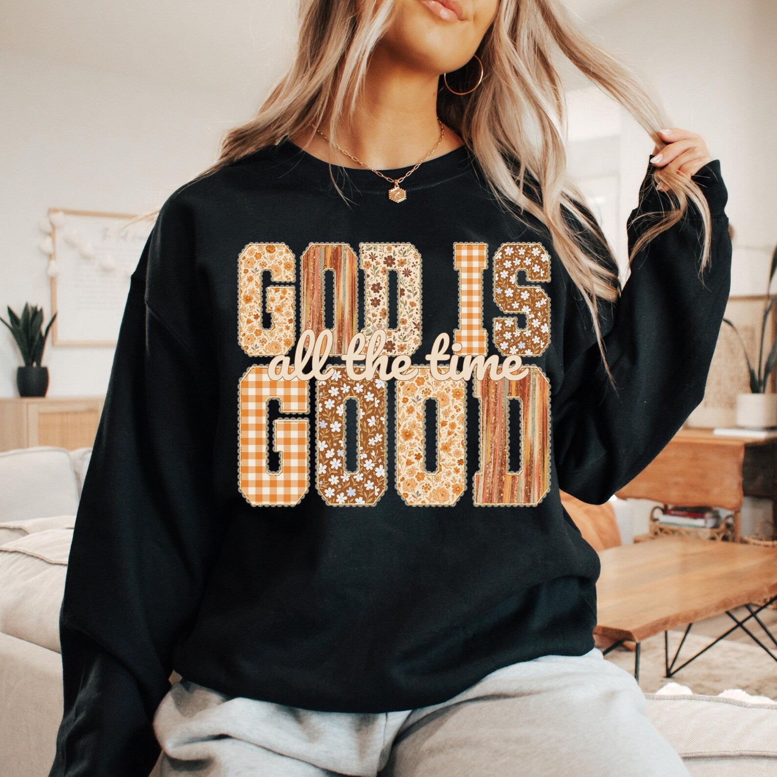 Carry a message of constant hope with this “God Is Good All the Time” sweatshirt. Its simple, uplifting design reminds you of God’s unchanging goodness in every season. Featuring the verse: “Give thanks to the Lord, for He is good.” — Psalm 136:1. Soft, cozy, and perfect for daily encouragement.