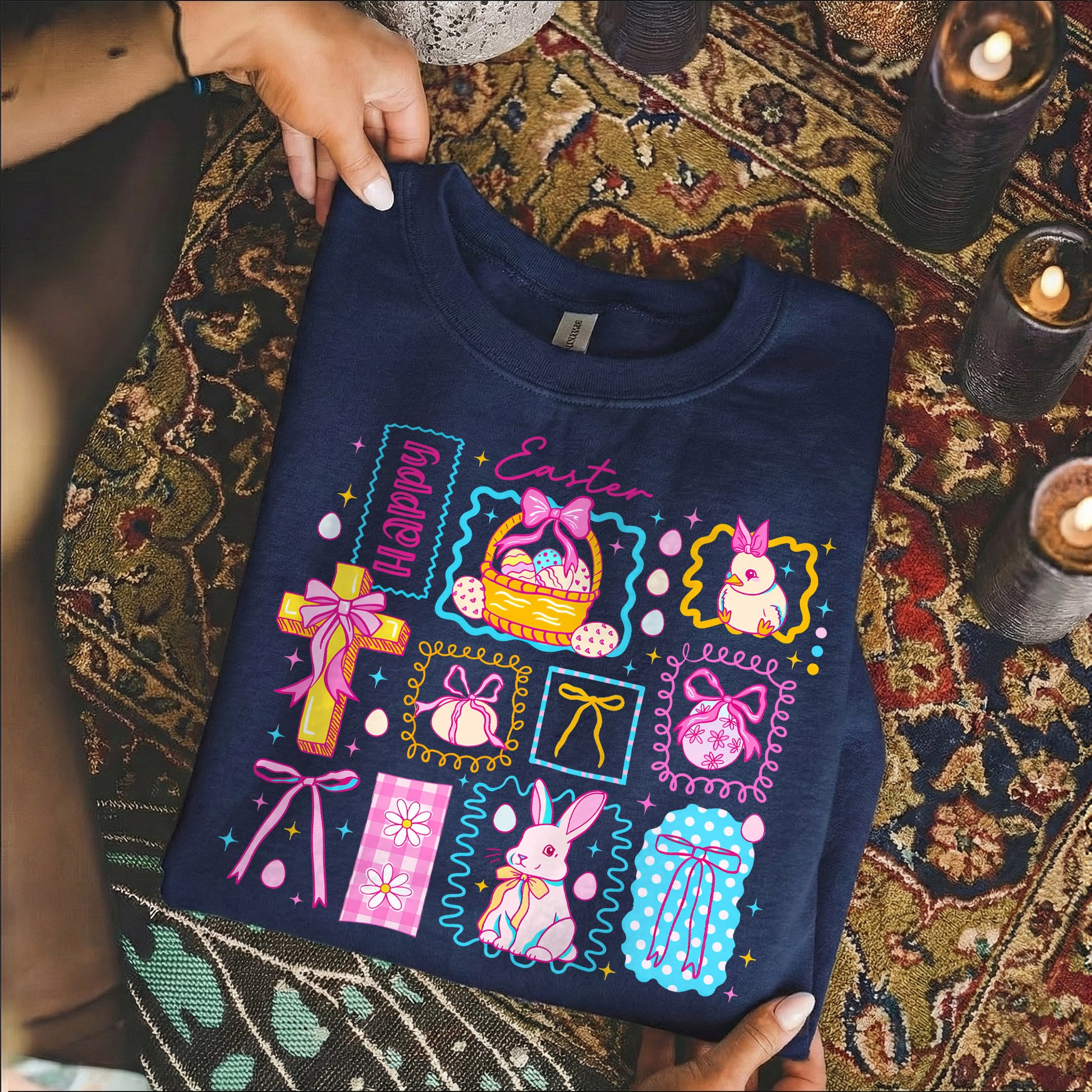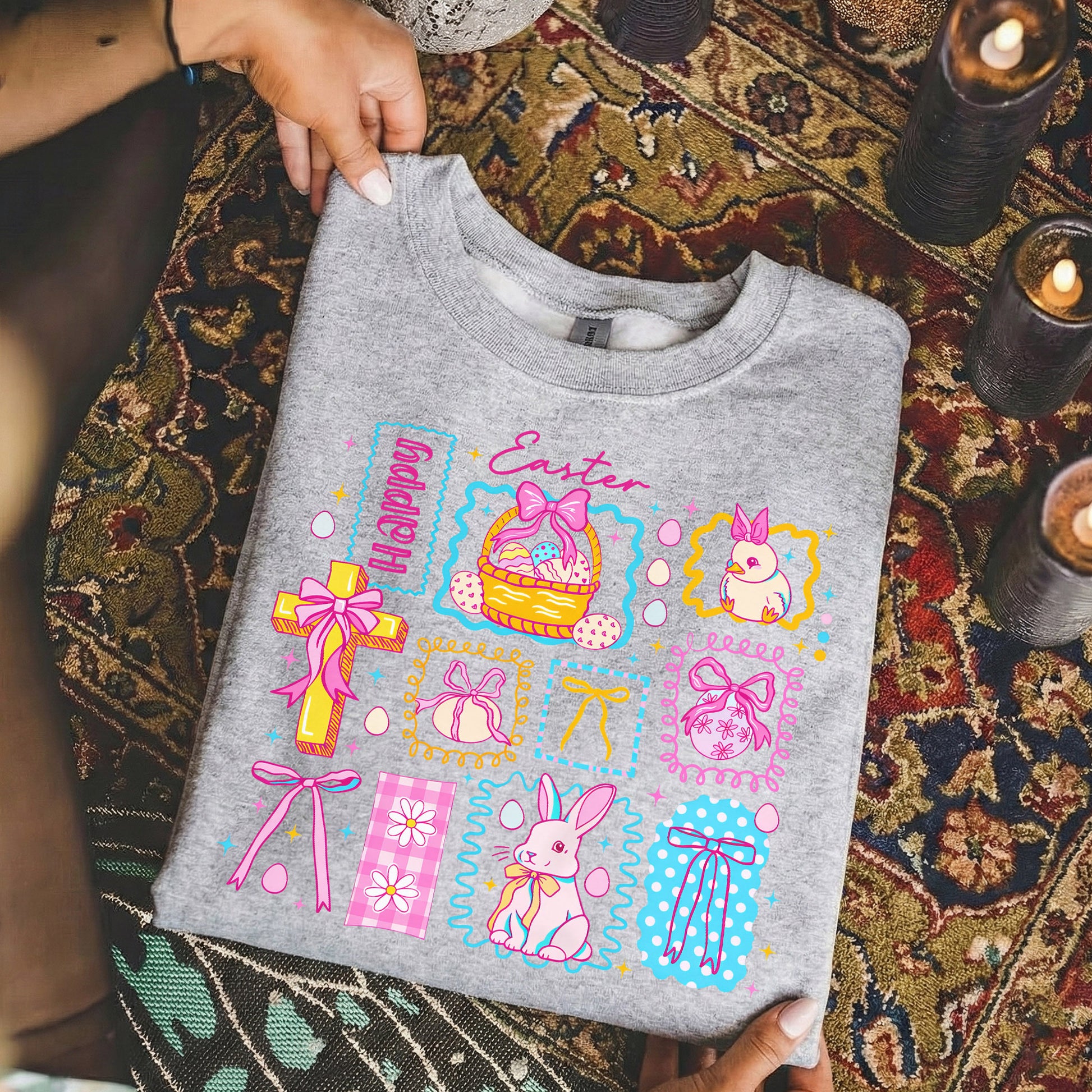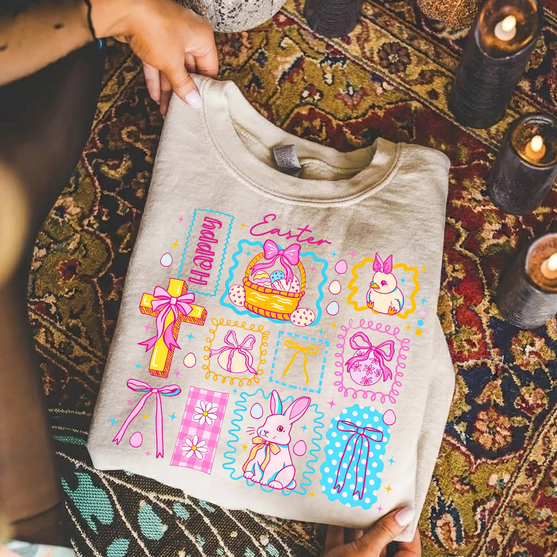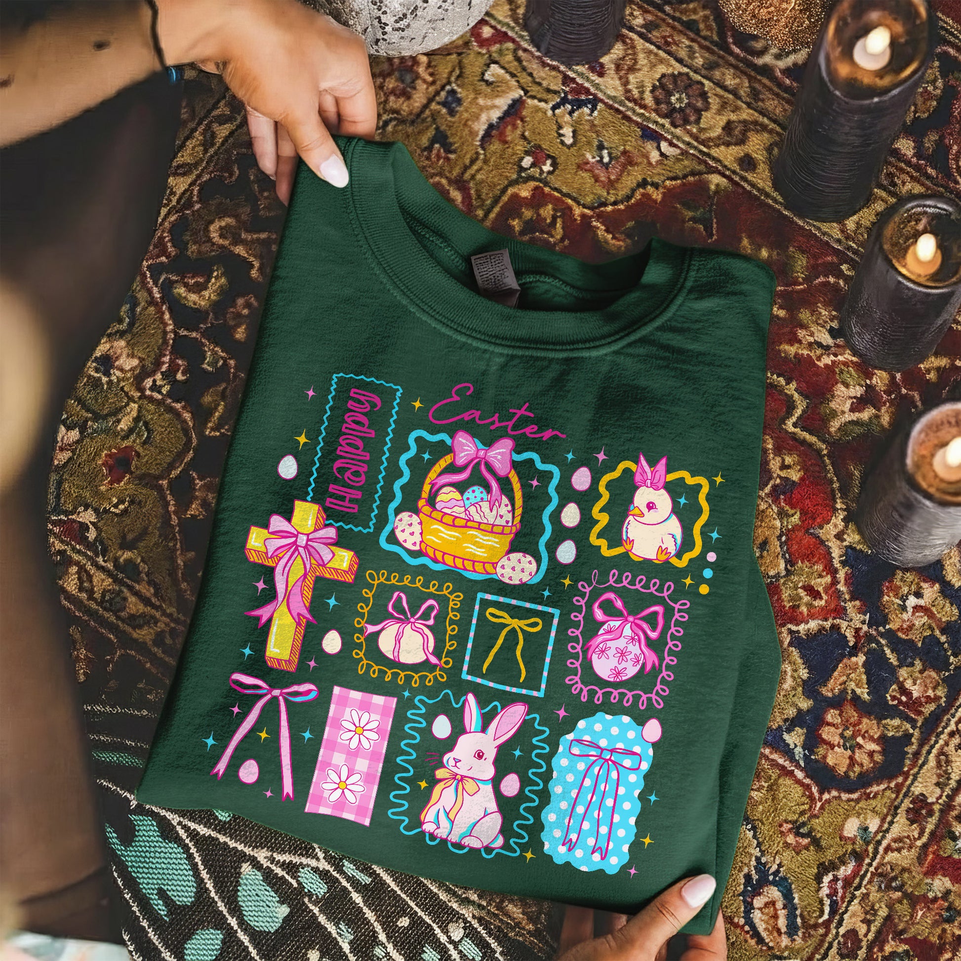Happy Easter Retro Patchwork Grid – He is Risen – Unisex Tshirt / Hoodie / Sweatshirt