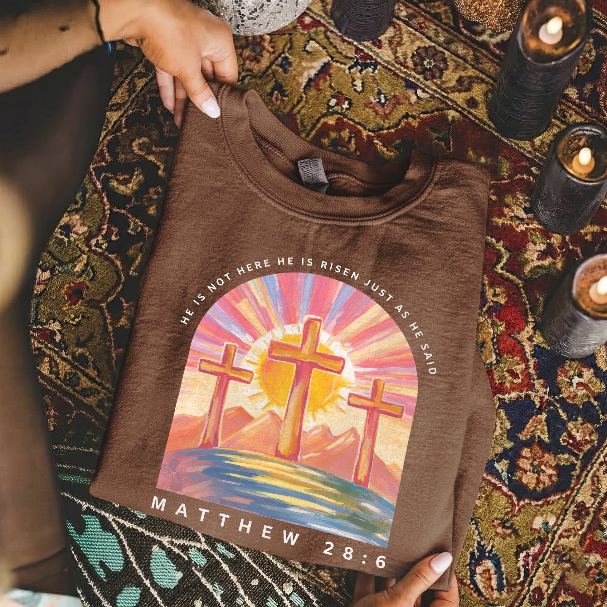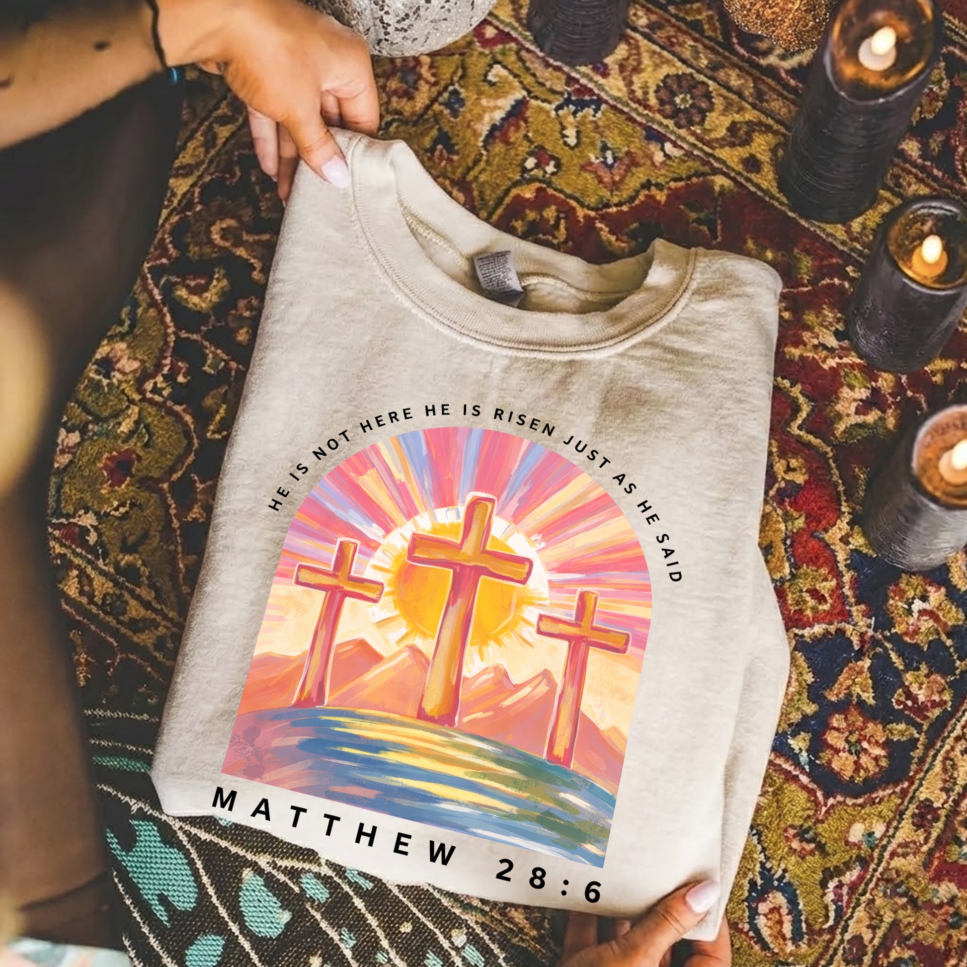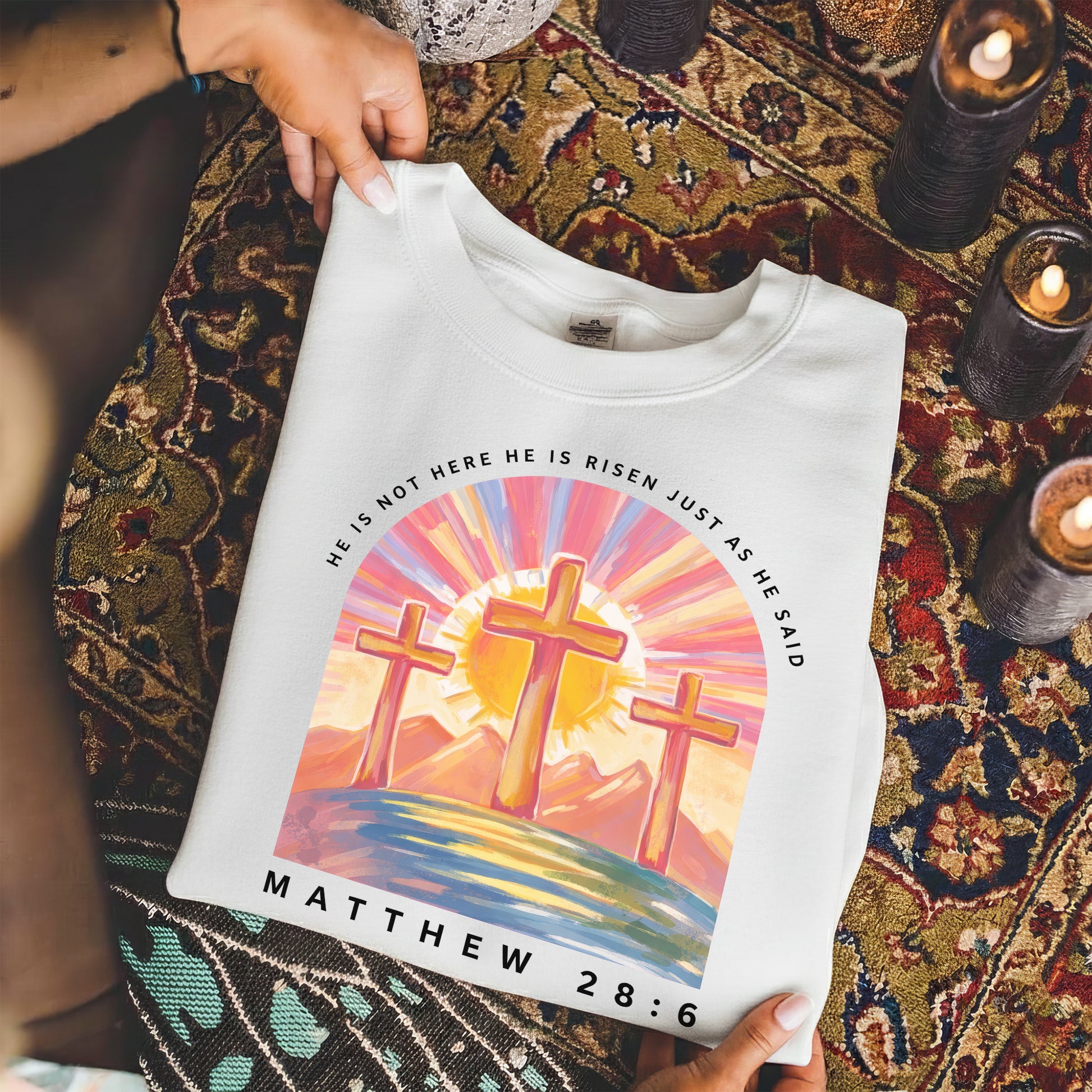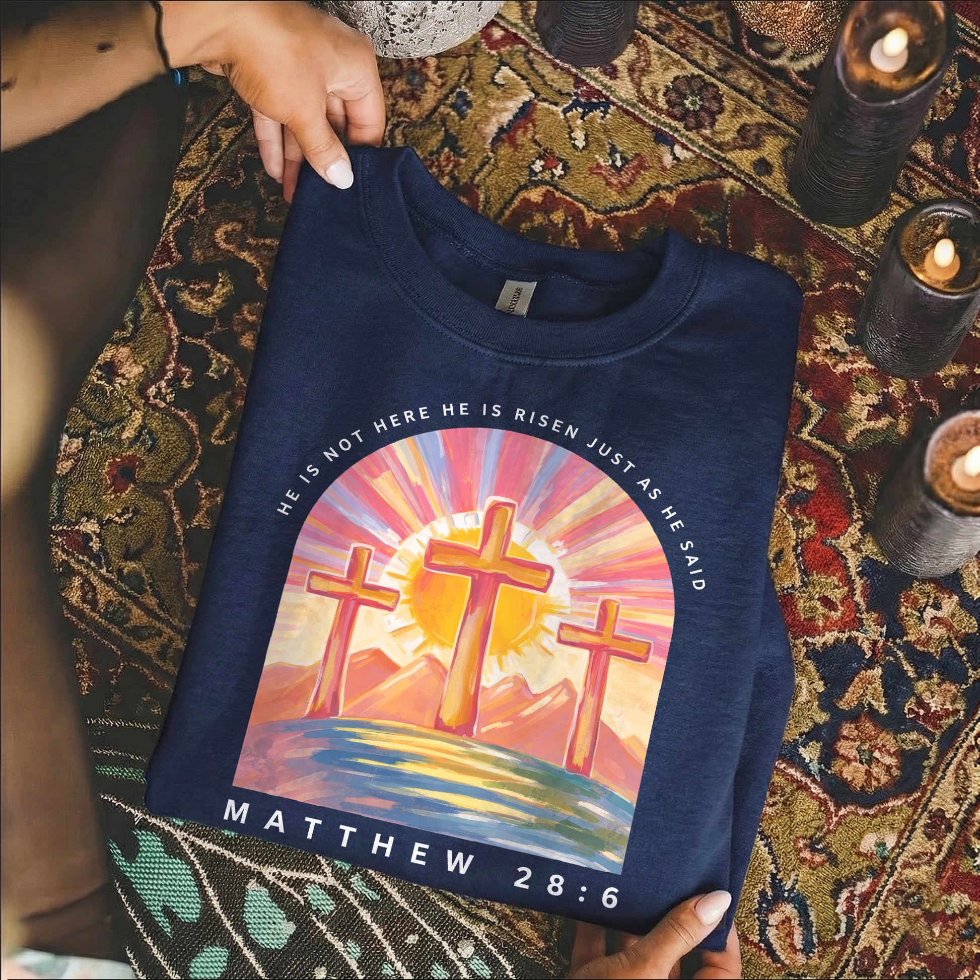 Perfect for Easter Sunday, church gatherings, family celebrations, or everyday wear as a quiet declaration of faith.