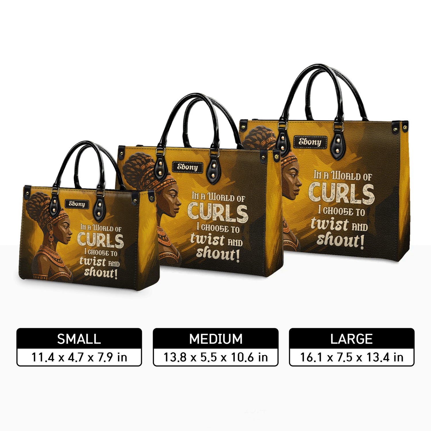 Carry your natural hair pride with royal confidence with our "In A World Of Curls" Personalized Leather Handbag. This exquisite heritage-inspired accessory beautifully combines African elegance with natural hair celebration, featuring a stunning profile of a majestic African queen with traditional headwrap and ornate jewelry against a rich golden background that symbolizes the precious value of embracing your natural crown. Perfect for the woman who celebrates her natural hair journey while maintaining regal style, this handcrafted handbag serves as both a daily companion and a bold declaration of your choice to stand out and celebrate your unique beauty in a world that often conforms.