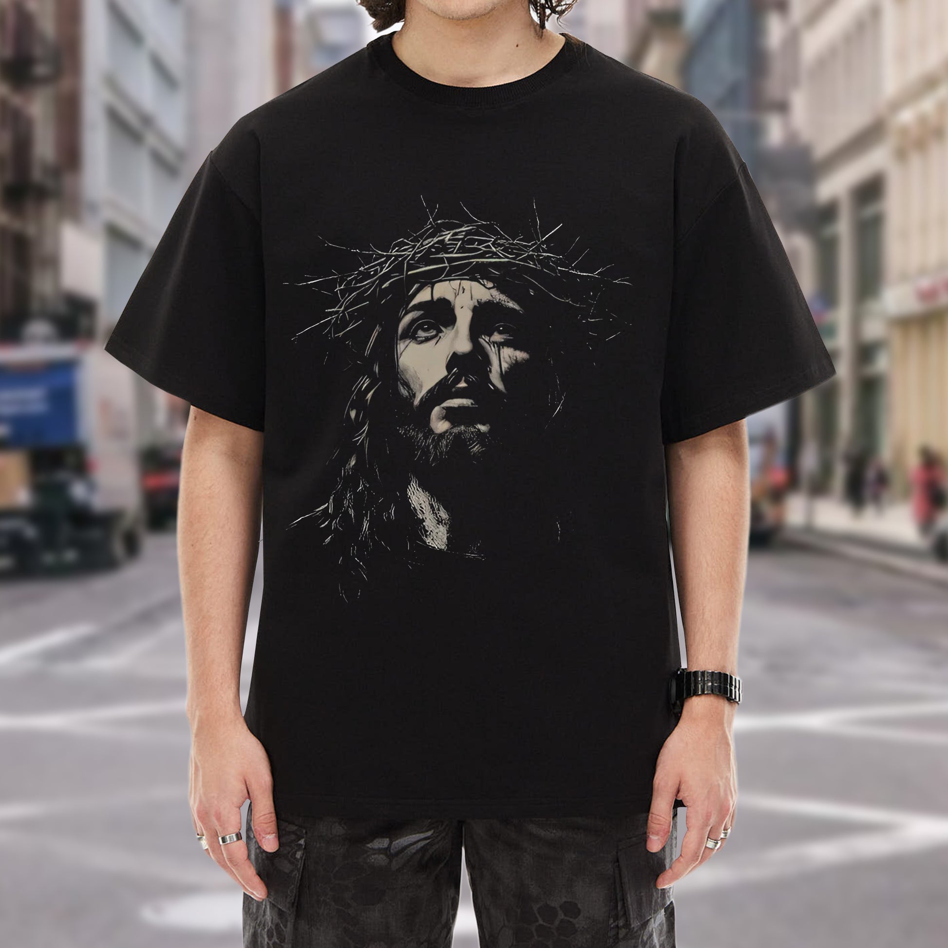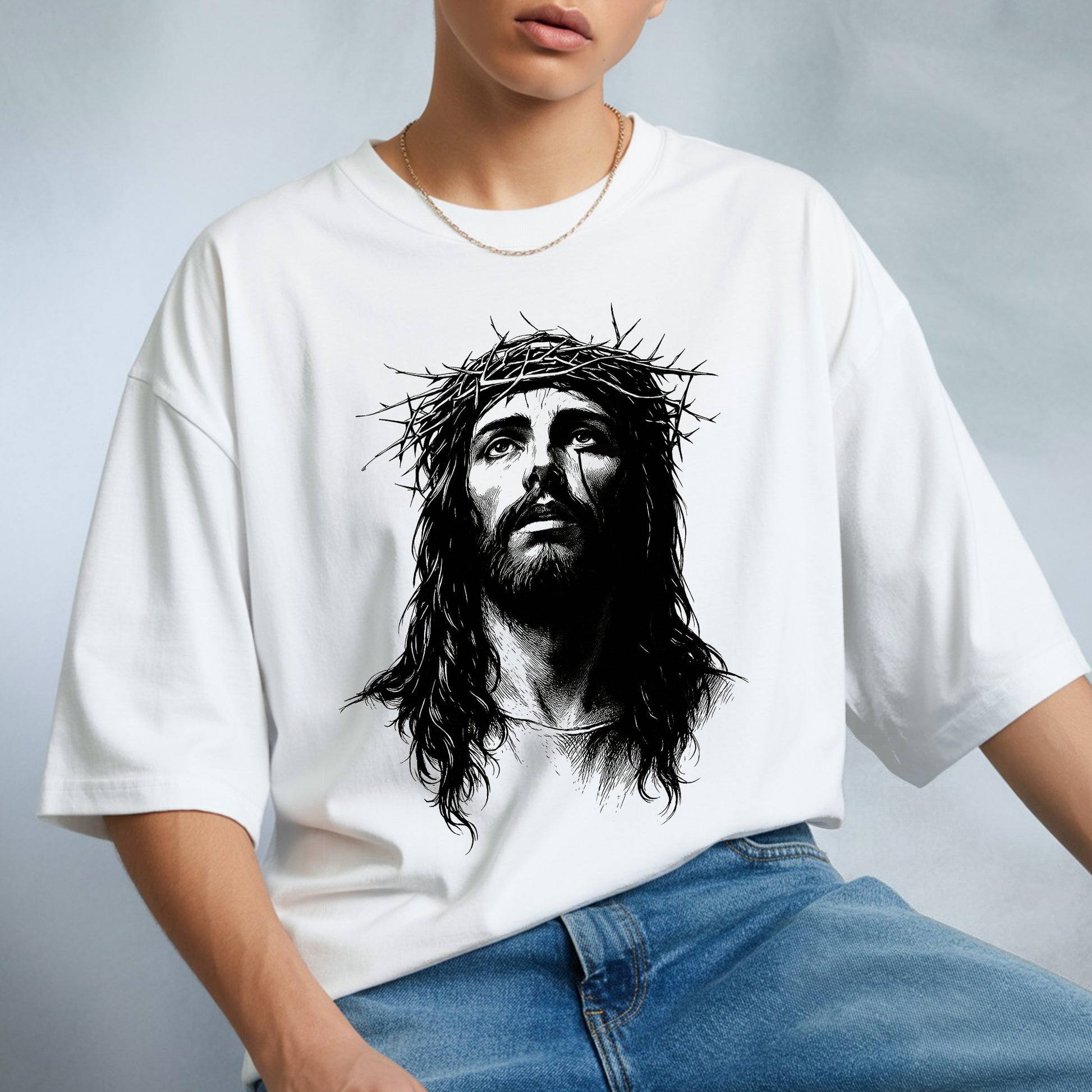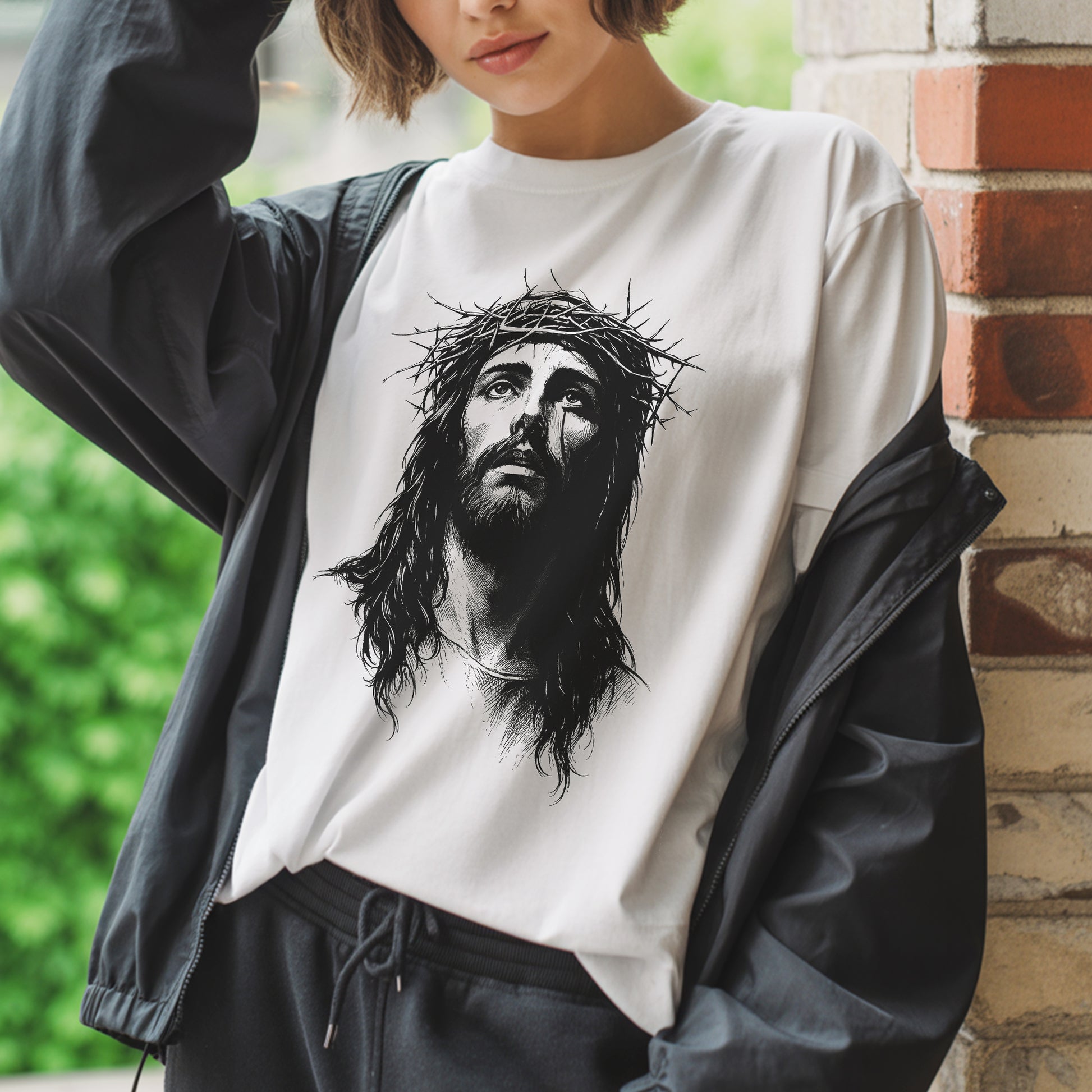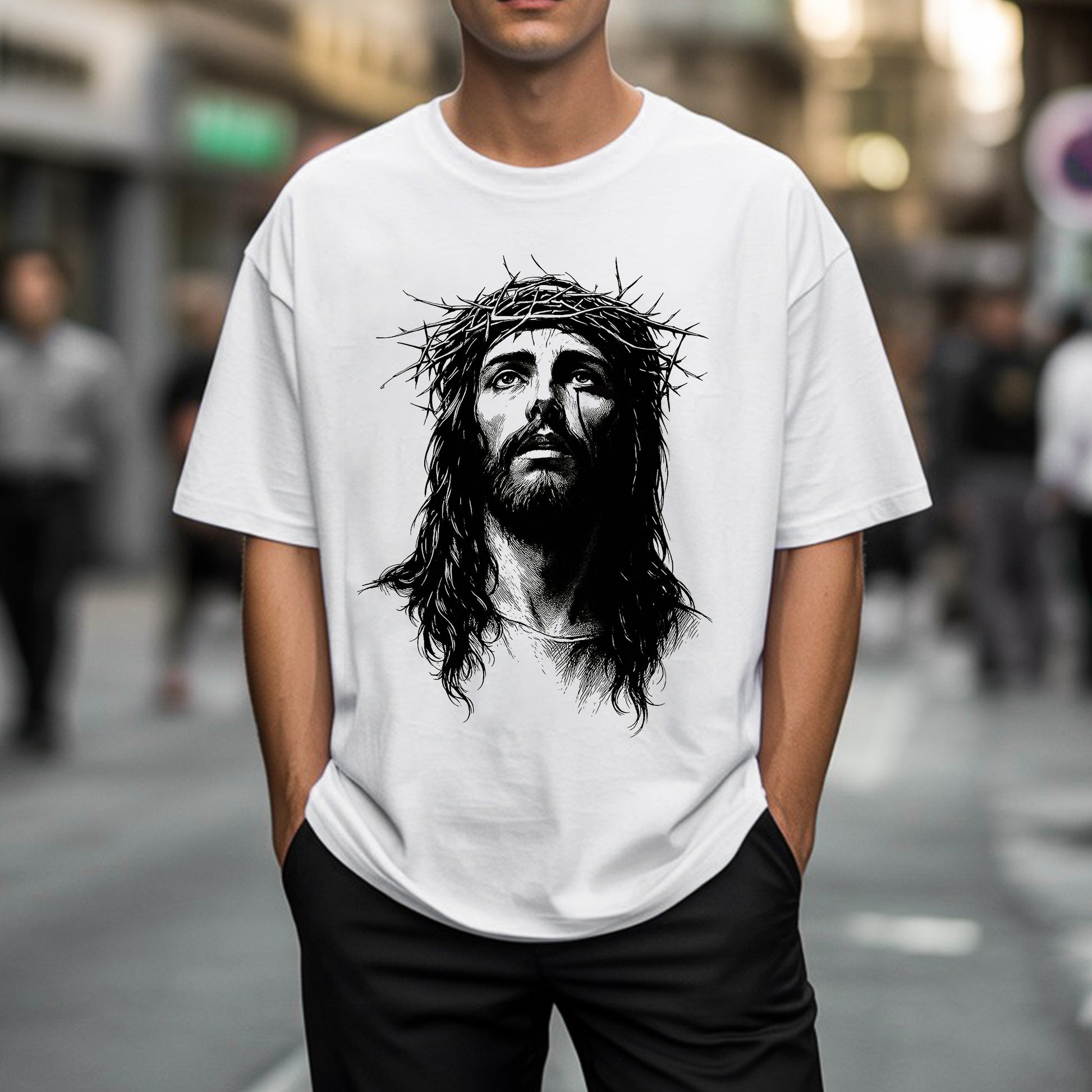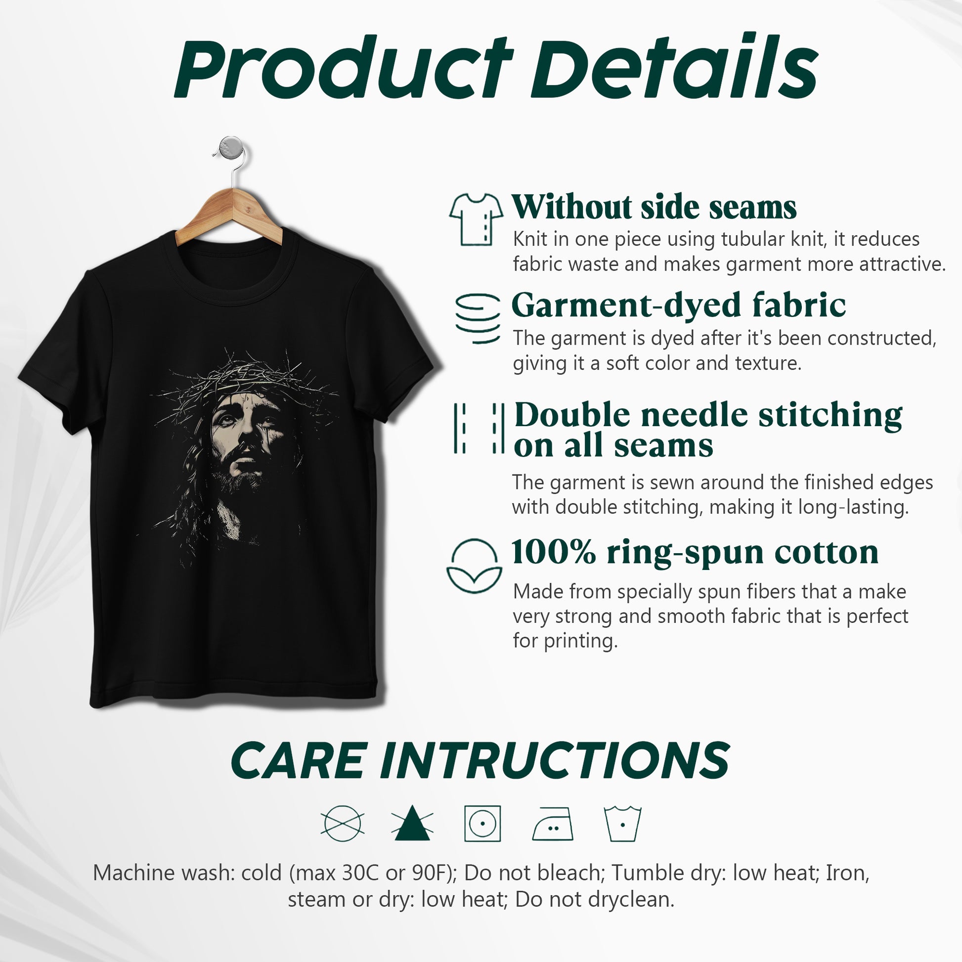 When the soldiers placed a crown of thorns on Jesus' head, they thought they were mocking a king. They had no idea they were witnessing the greatest act of love in human history. Our 'Jesus Crown of Thorns' T-shirt captures this sacred moment of sacrifice, reminding us that Jesus wore thorns so we could wear crowns.