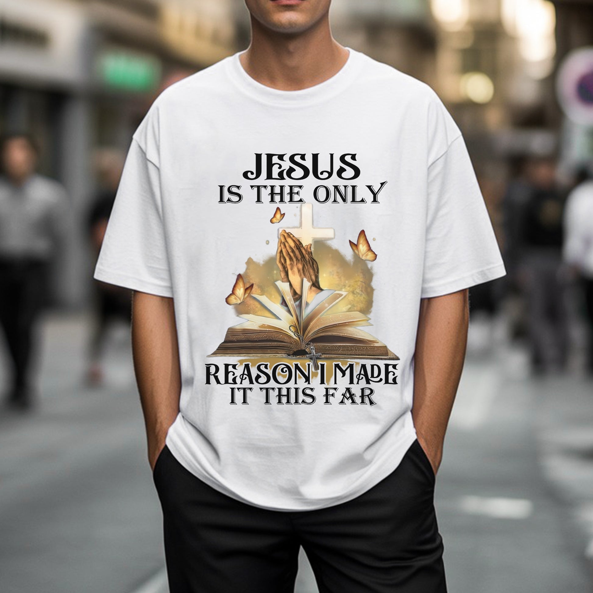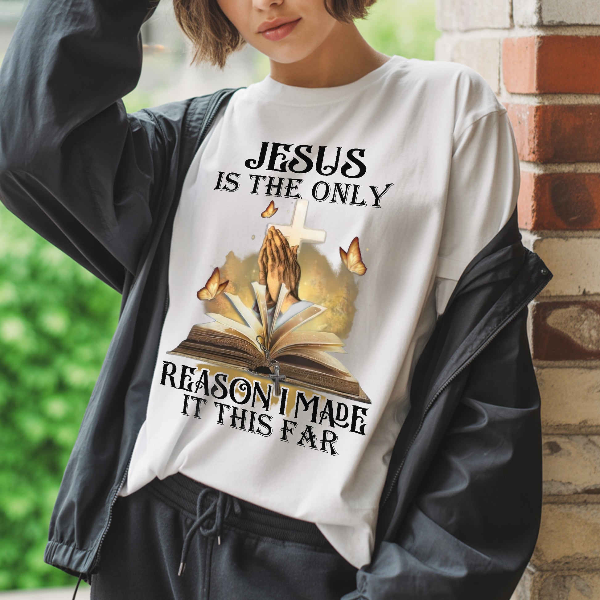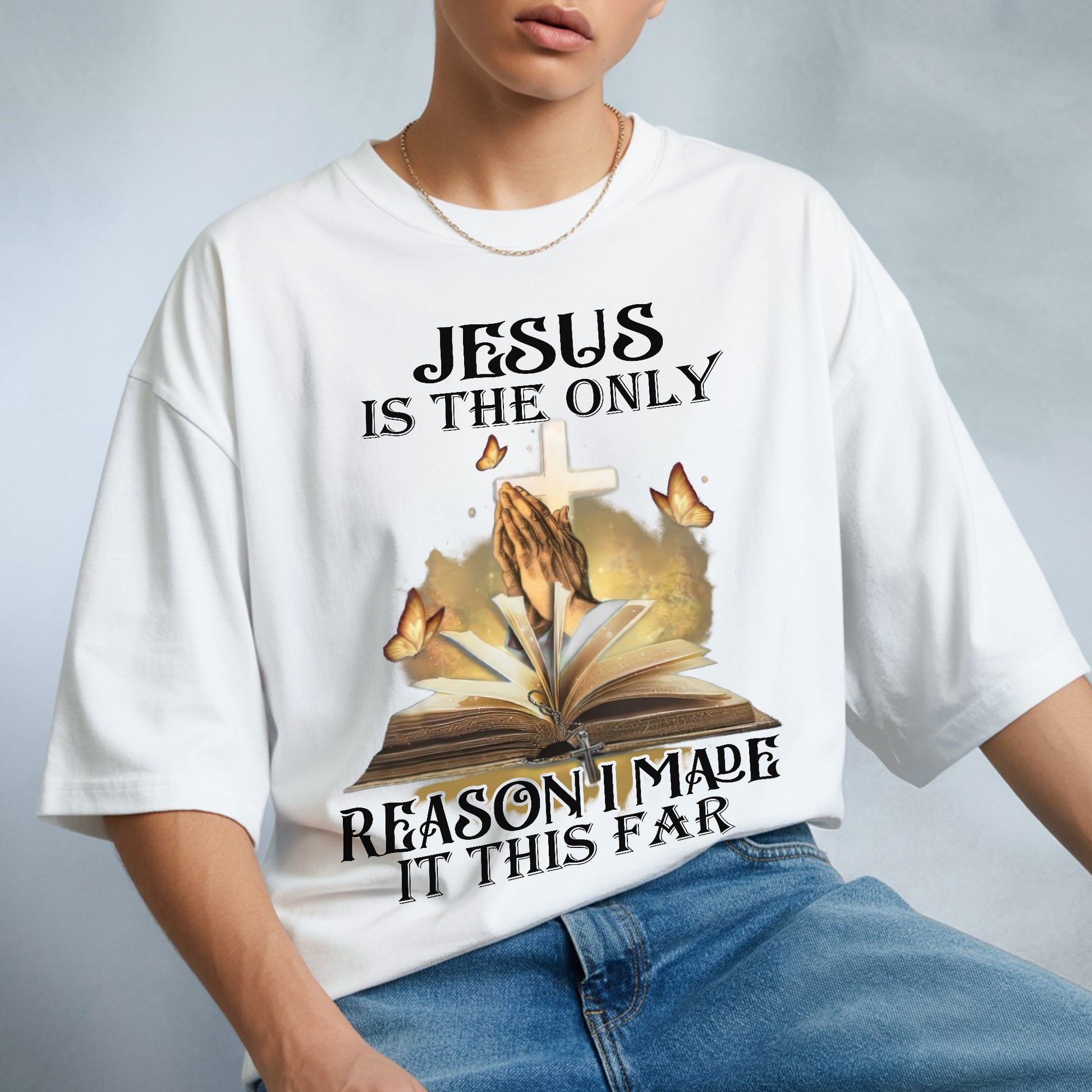 When the world asks how you survived, when others wonder about your strength, when people question your resilience—there's one truth that explains everything: JESUS IS THE ONLY REASON I MADE IT THIS FAR. Our testimony T-shirt carries the most honest acknowledgment of divine grace, the words that give credit where credit is due for every victory and breakthrough.