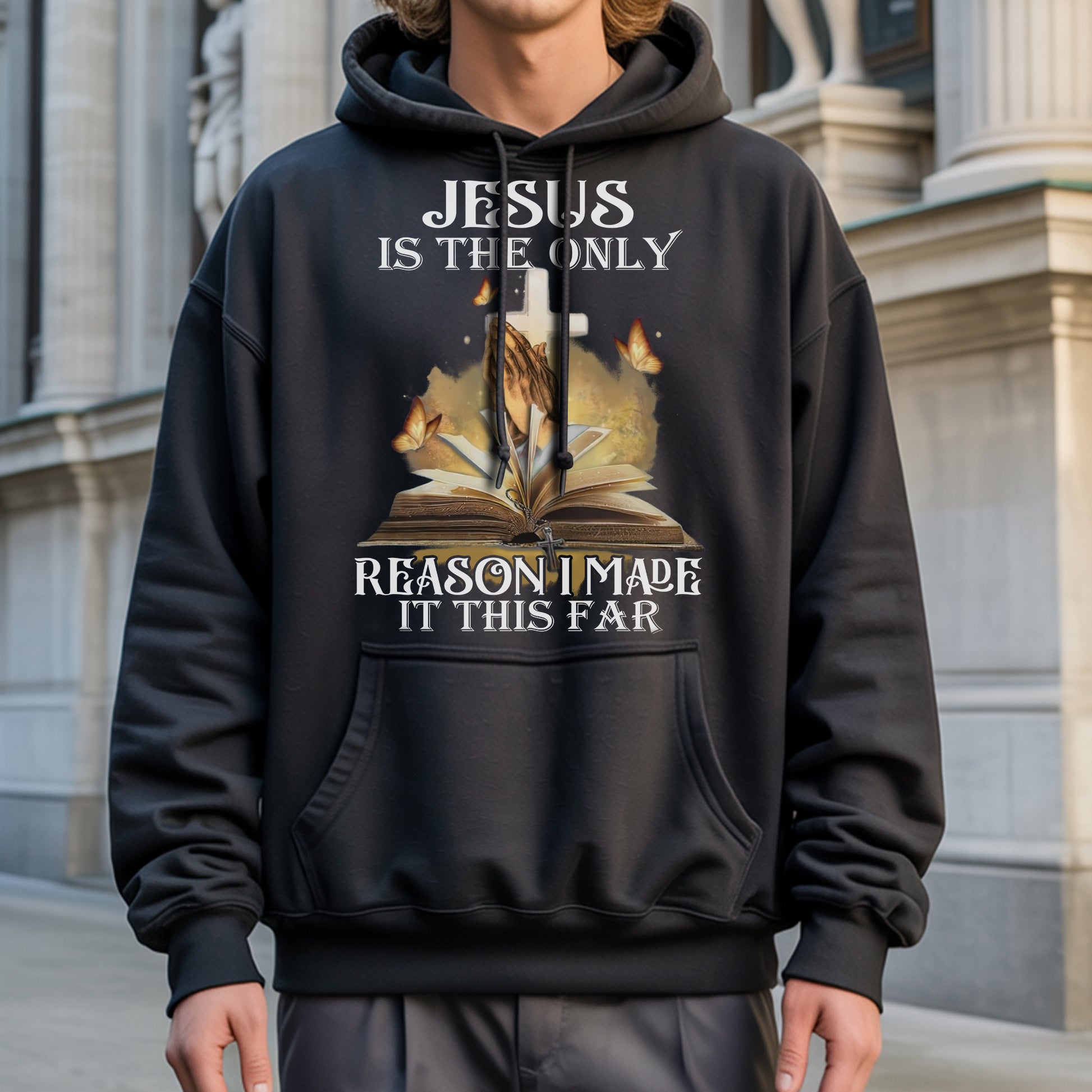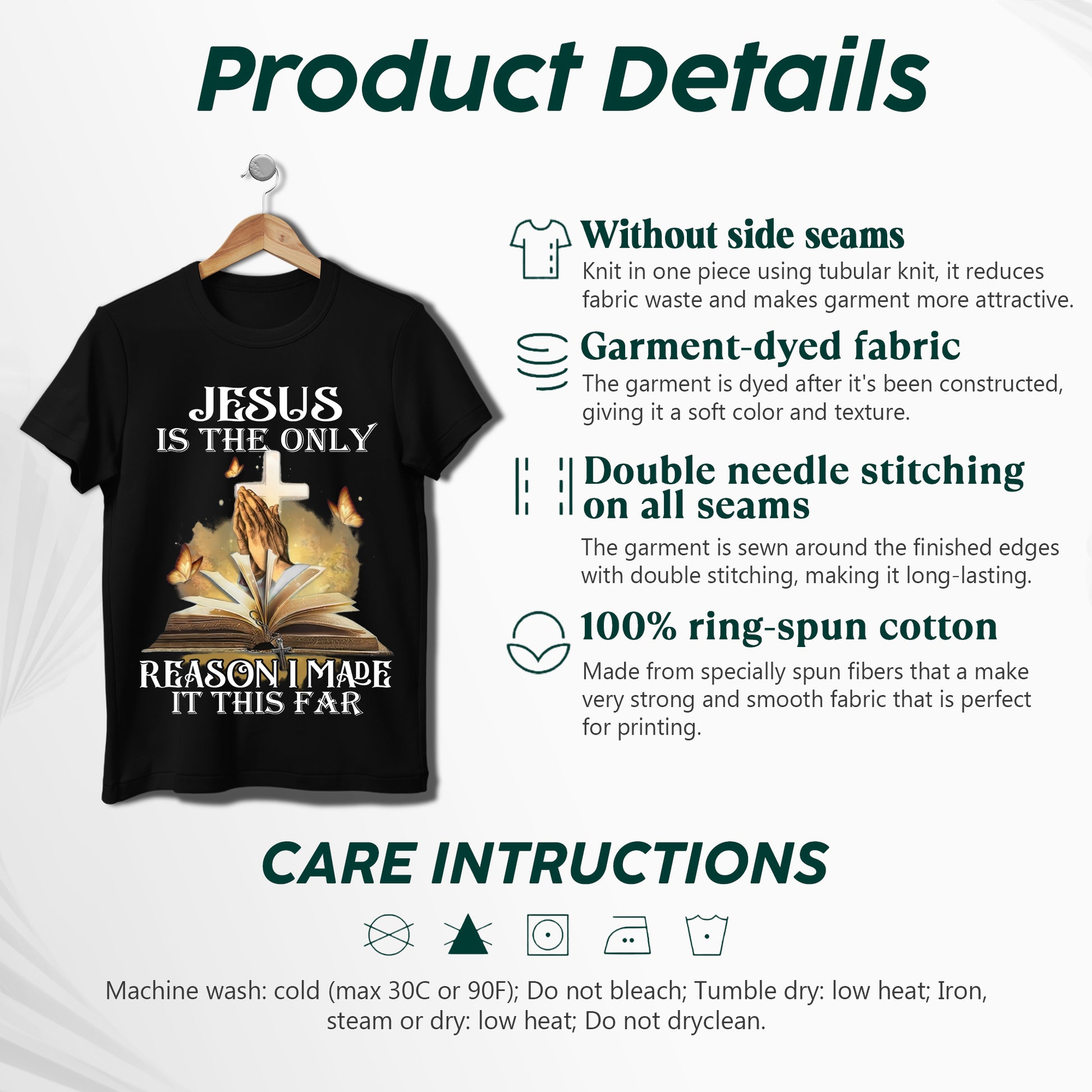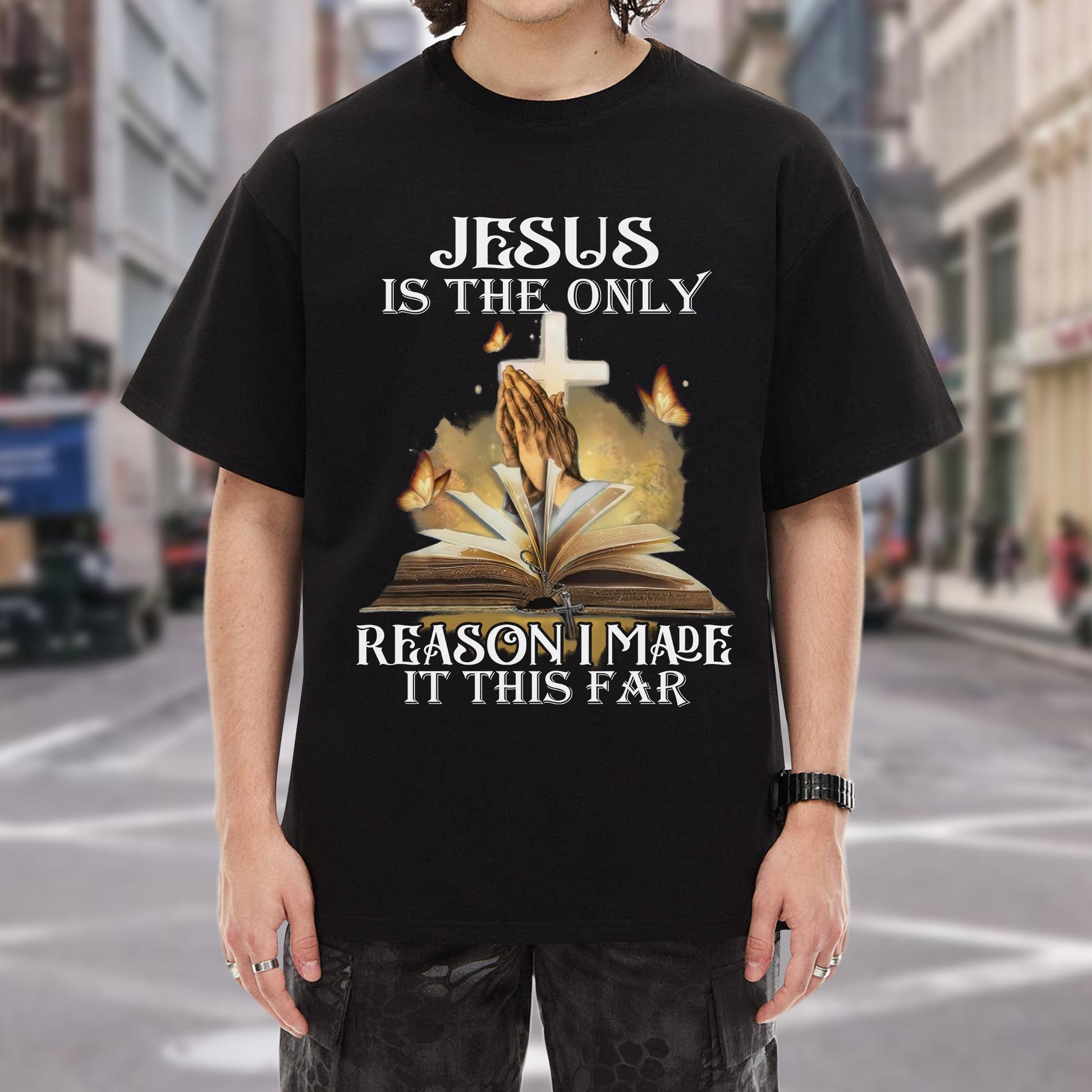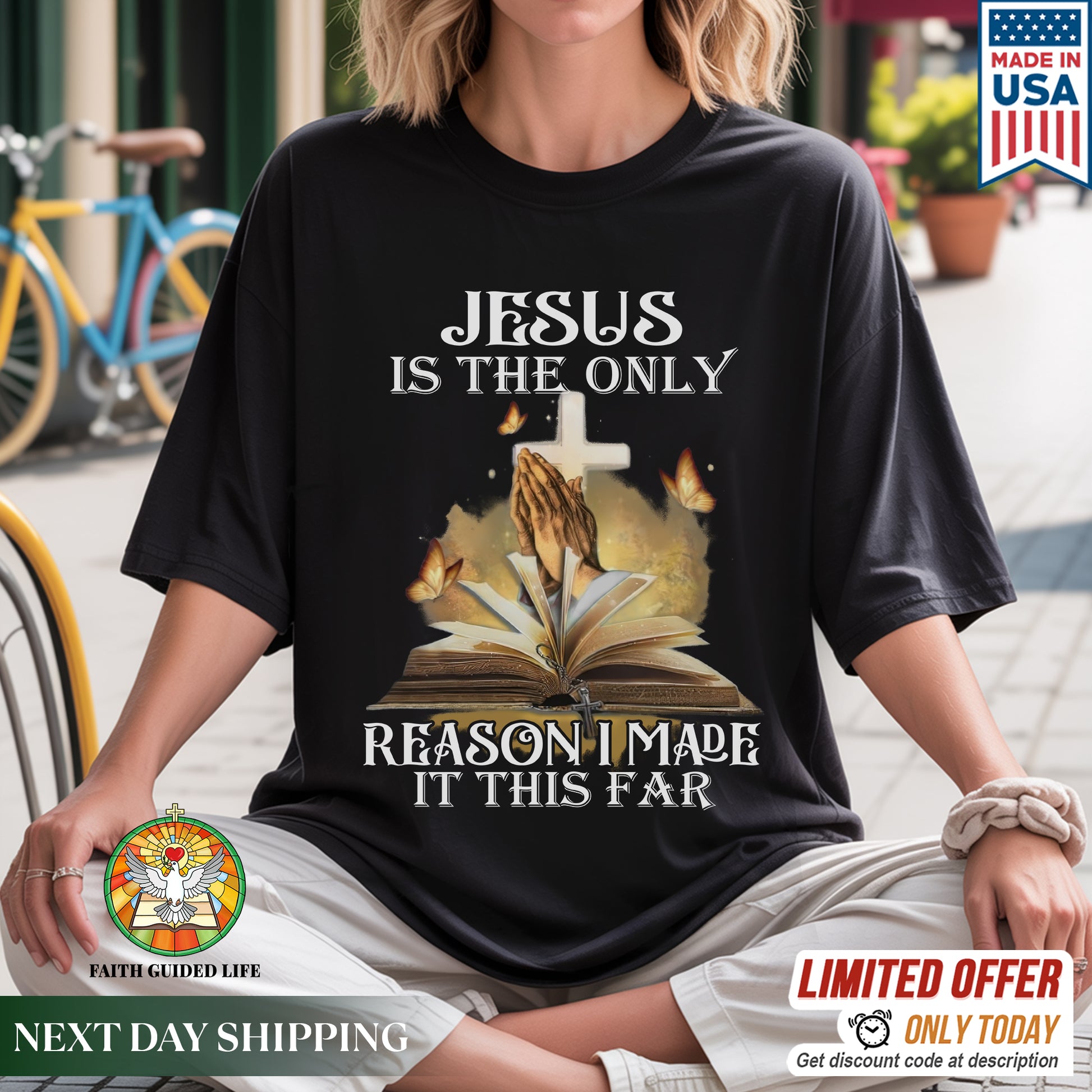 When the world asks how you survived, when others wonder about your strength, when people question your resilience—there's one truth that explains everything: JESUS IS THE ONLY REASON I MADE IT THIS FAR. Our testimony T-shirt carries the most honest acknowledgment of divine grace, the words that give credit where credit is due for every victory and breakthrough.