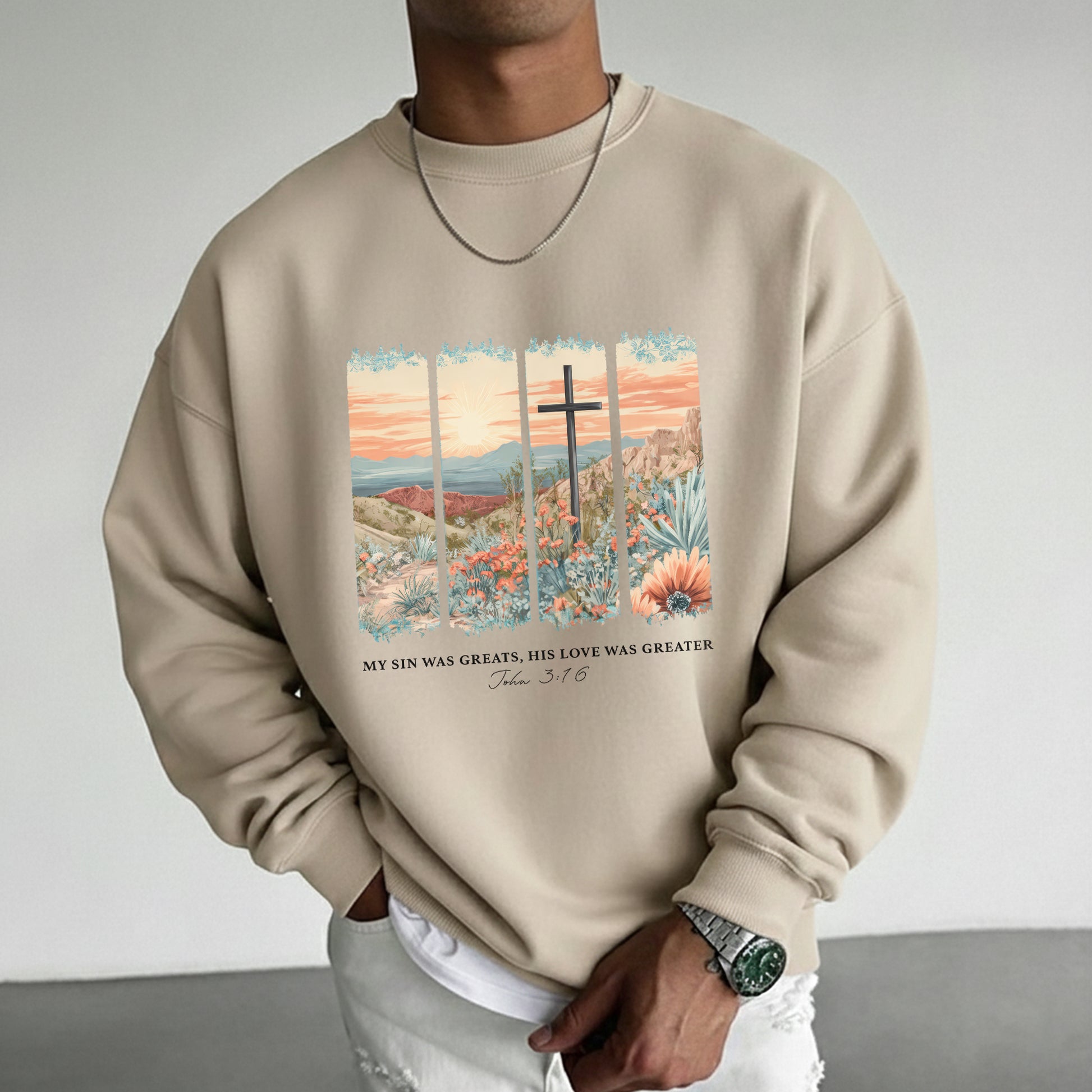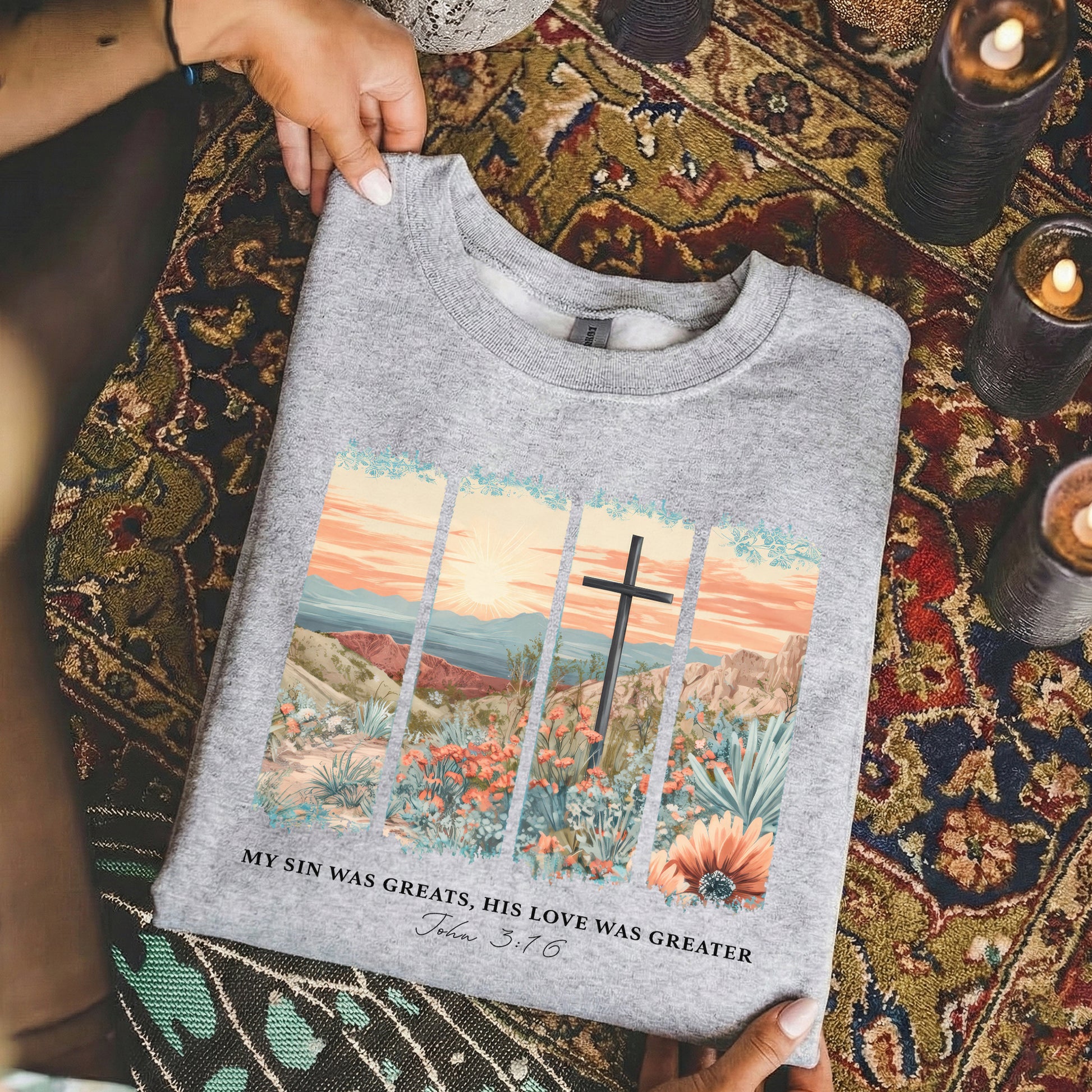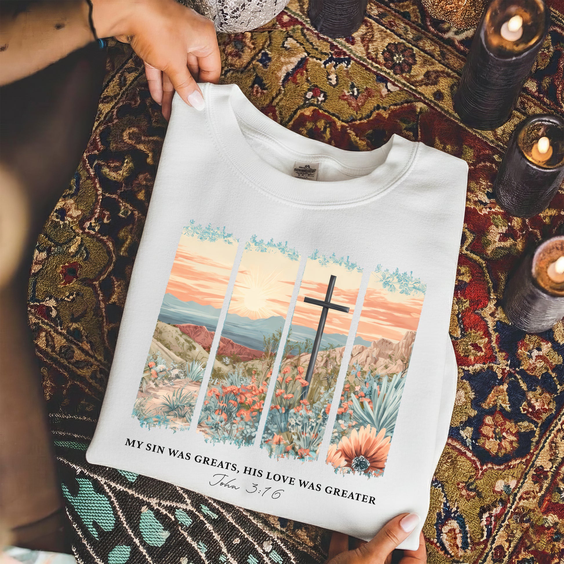 John 3:16 Christian Desert Landscape – He is Risen – Unisex Tshirt / Hoodie / Sweatshirt