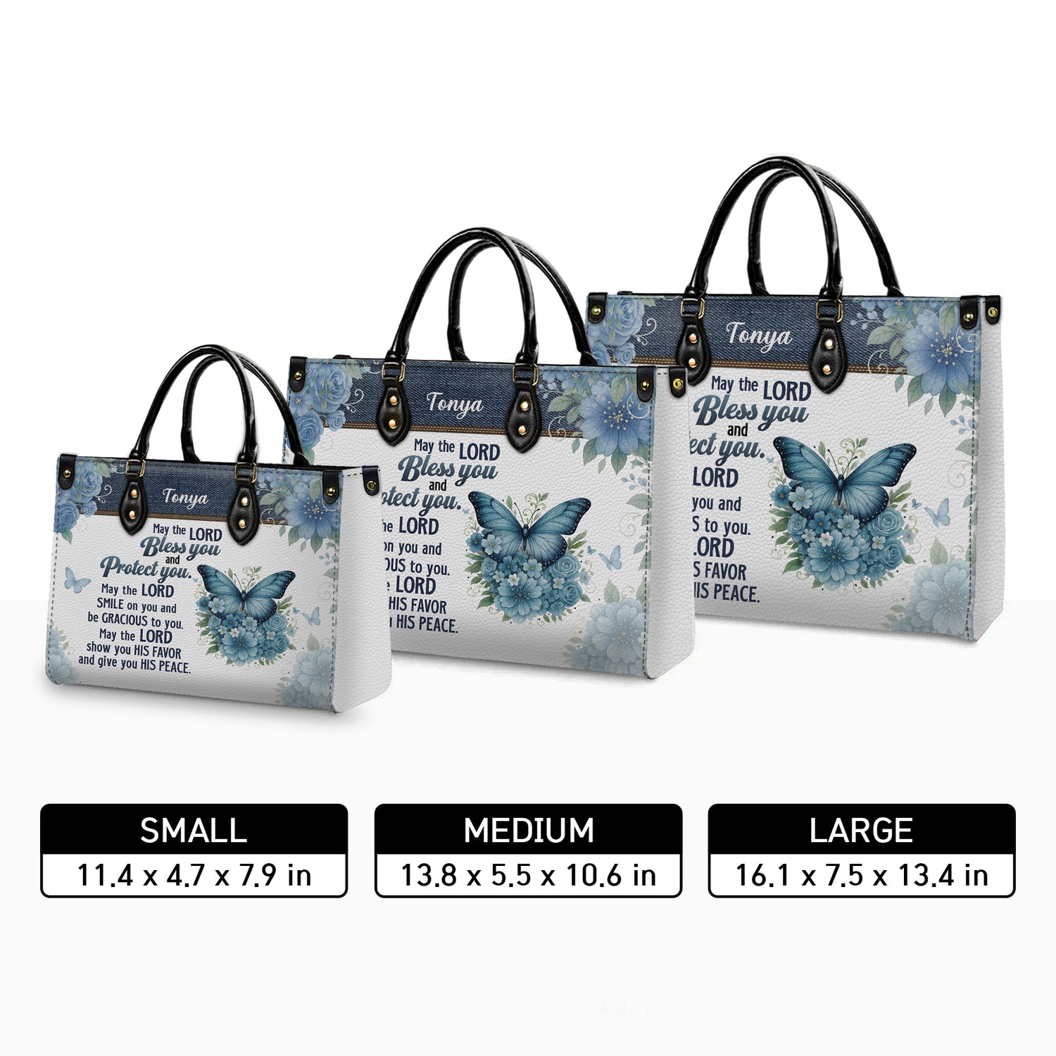 Carry your blessings with divine favor with our "May The Lord Bless You" Personalized Leather Handbag. This exquisite blessing-inspired accessory beautifully combines ancient biblical benediction with serene elegance, featuring delicate blue roses and graceful butterflies against a peaceful blue and white background that symbolizes the Lord's favor, protection, and peace. Perfect for the faithful woman who treasures God's blessings while maintaining tranquil style, this handcrafted handbag serves as both a daily companion and a meaningful reminder of the timeless Aaronic blessing - may the Lord bless you and protect you, smile upon you with grace, and give you His perfect peace.