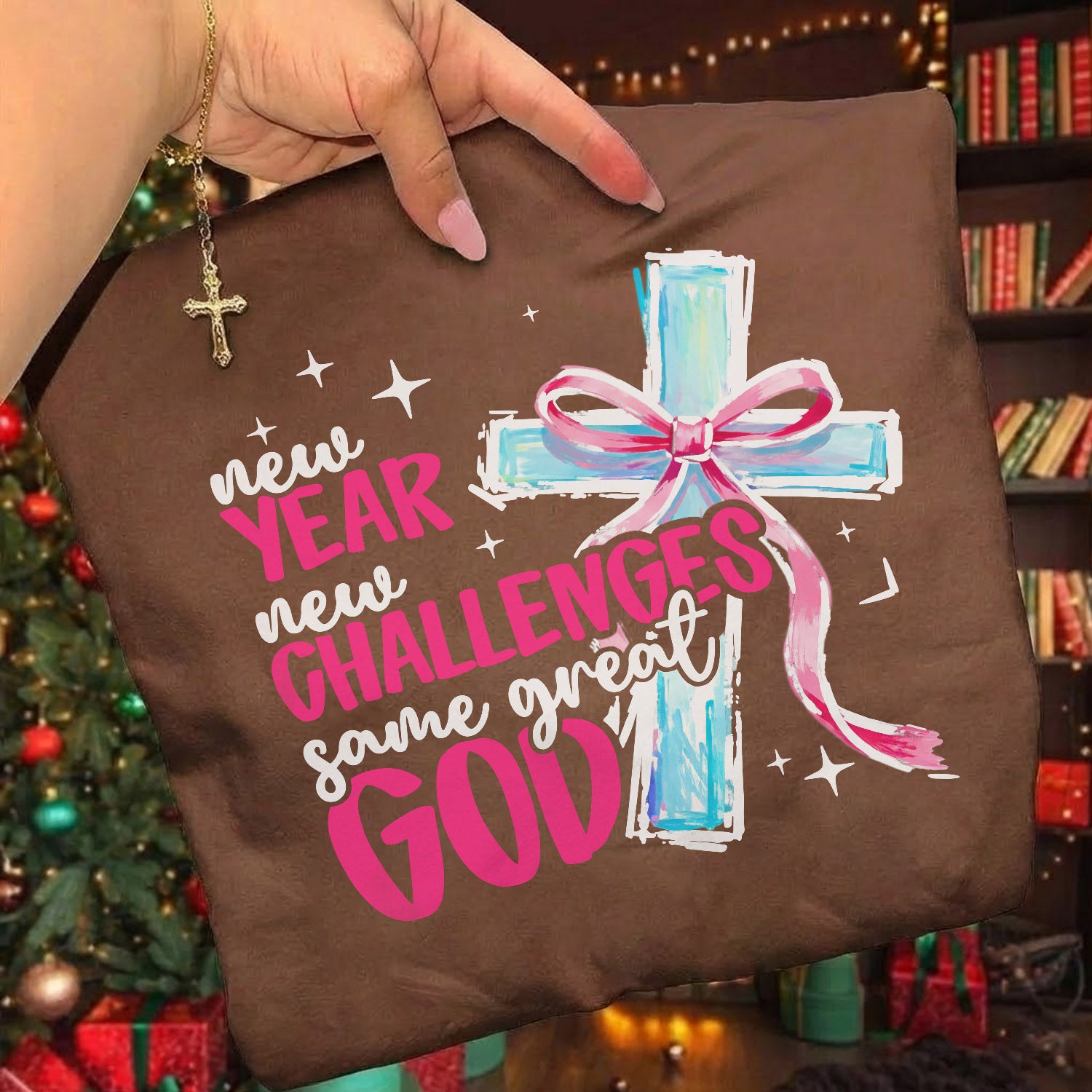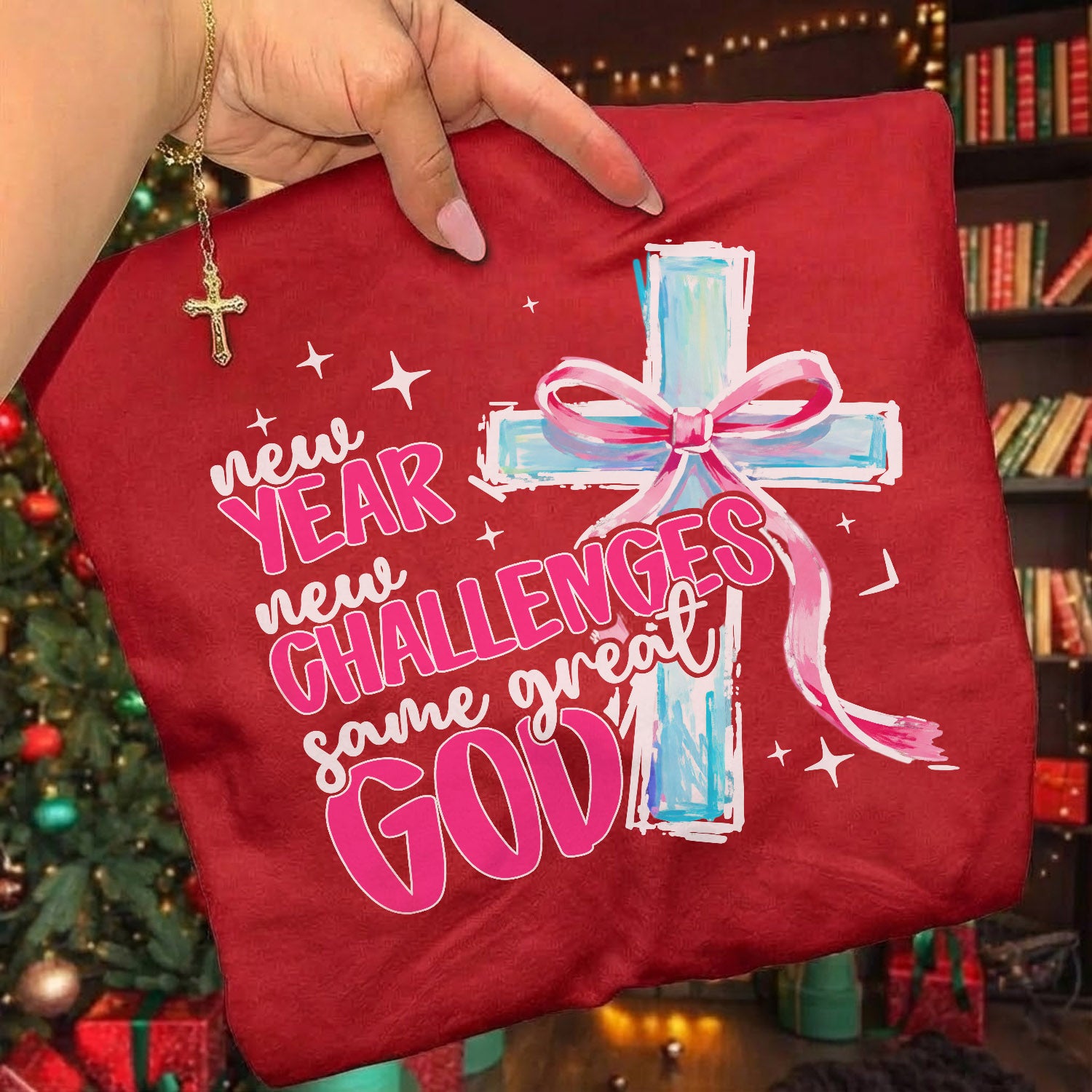 Step into the new year with faith, courage, and confidence in our “New Year, New Challenges, Same Great God” design. Featuring a painted cross wrapped in a symbolic ribbon of hope, this inspiring piece reminds you that no matter what the coming year holds, the God who carried you before will carry you again.