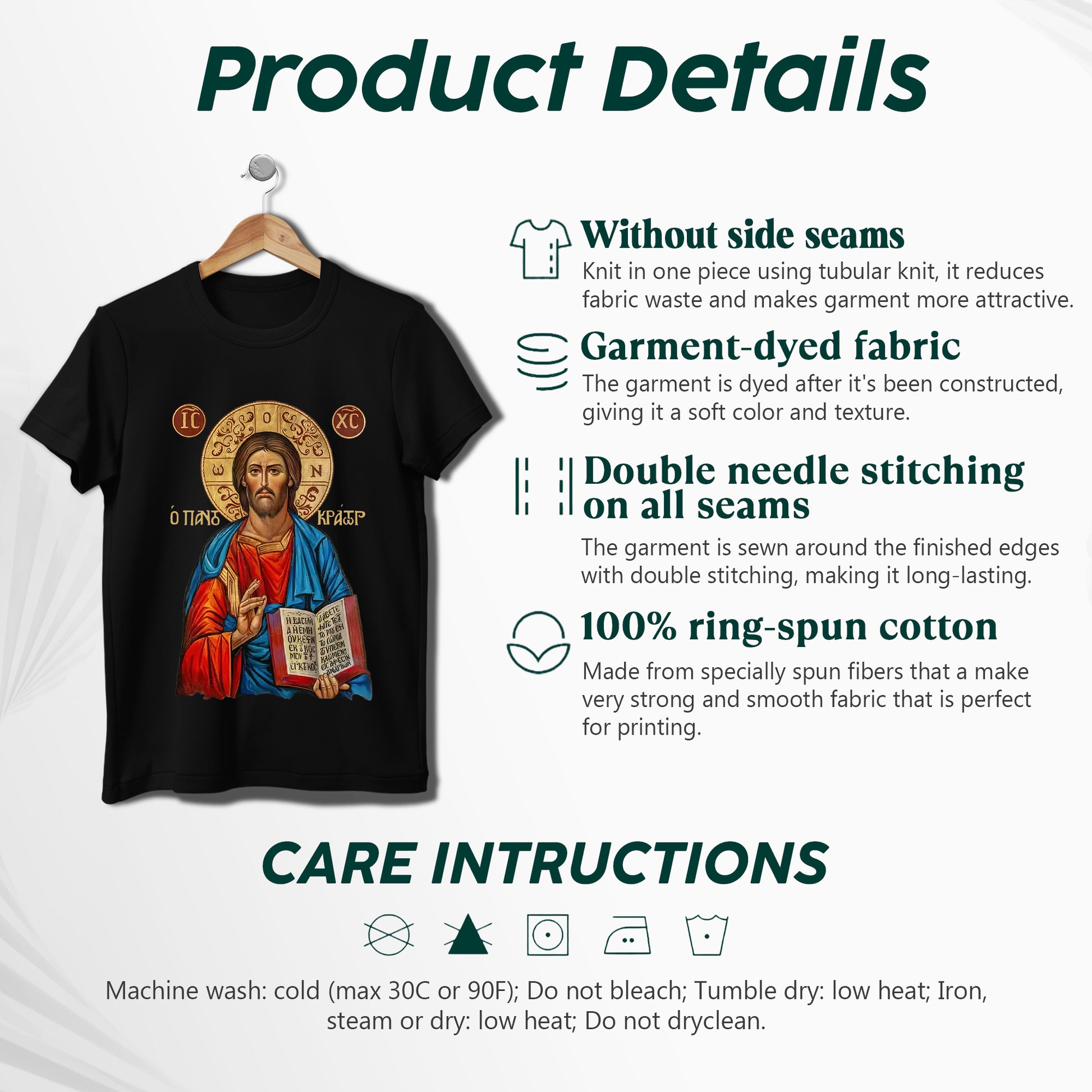 When the world offers modern interpretations, when culture abandons ancient languages, when society forgets the sacred traditions of the Orthodox Church—there's one image that has preserved the faith of millions for over 1,000 years: THE ORTHODOX CHRIST WITH SACRED CYRILLIC TEXT. Our 'Orthodox Jesus Christ Cyrillic Icon' T-shirt carries the most revered artistic and linguistic tradition in Slavic Christianity, the icon that has guided Russian, Serbian, Bulgarian, and Ukrainian believers through centuries of faith.
