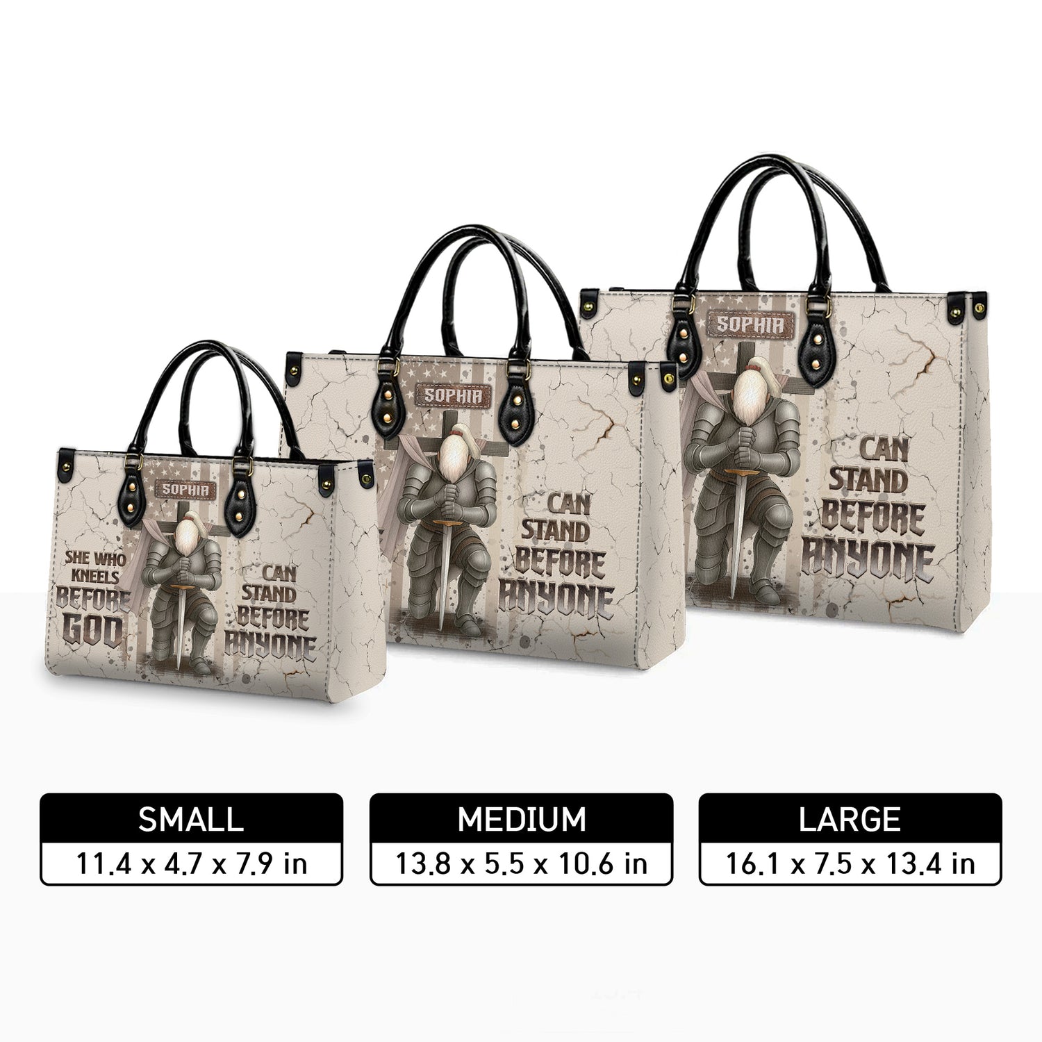 She Who Kneels Before God Can Stand Before Anyone Personalized Leather Handbag