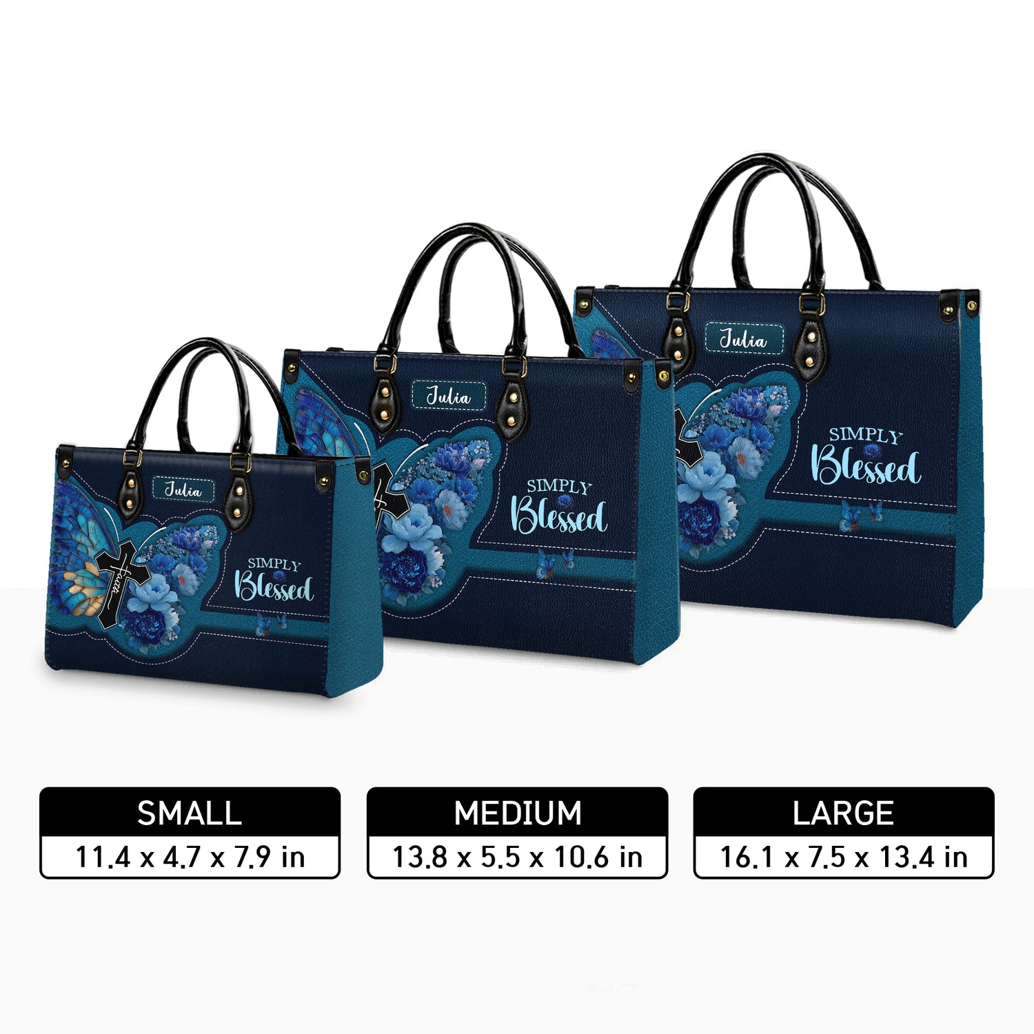 Carry your gratitude with simple elegance with our "Simply Blessed" Personalized Leather Handbag. This exquisite blessing-inspired accessory beautifully combines humble thankfulness with natural beauty, featuring a magnificent blue butterfly wing adorned with delicate blue flowers and a bold cross bearing the name of Jesus against a rich navy background that symbolizes the depth of God's blessings. Perfect for the faithful woman who finds joy in life's simple blessings while maintaining understated style, this handcrafted handbag serves as both a daily companion and a meaningful reminder that sometimes the most profound truth is the simplest one - we are simply blessed by His love.