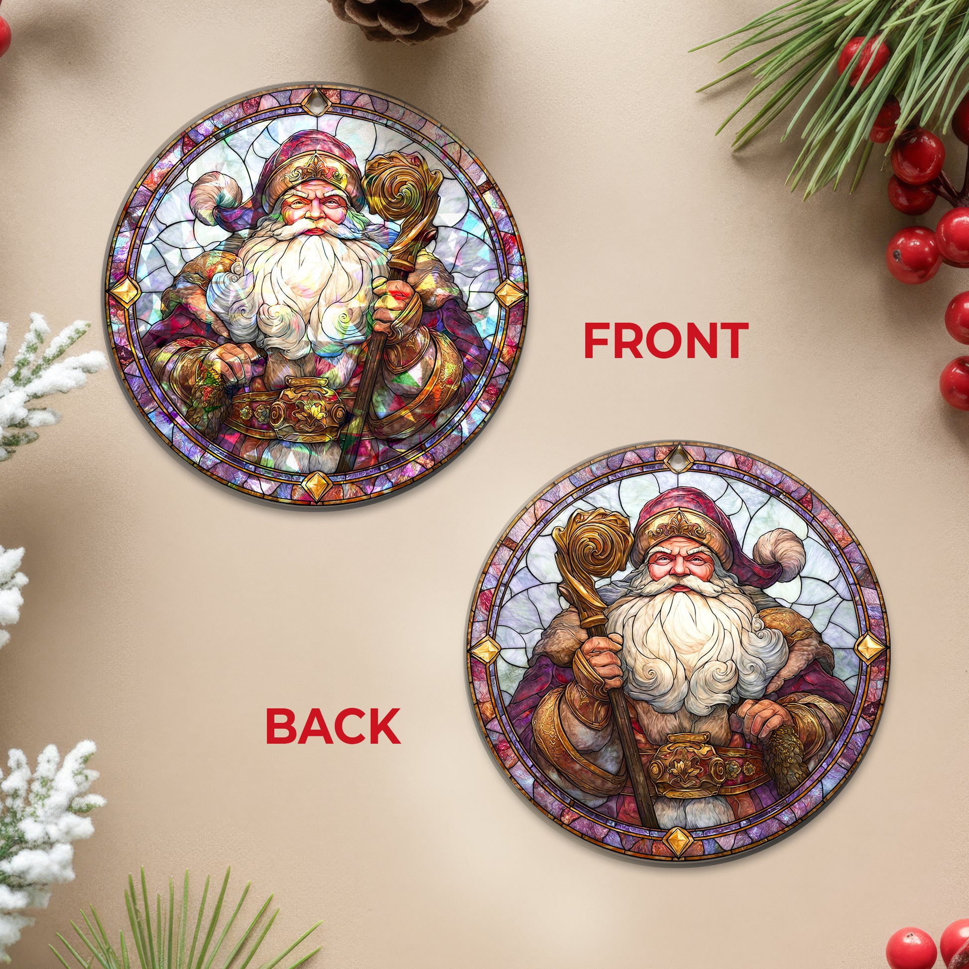 Stained Glass Santa Claus Holographic Christmas Ornament | Majestic St. Nick | Festive Holiday Keepsake