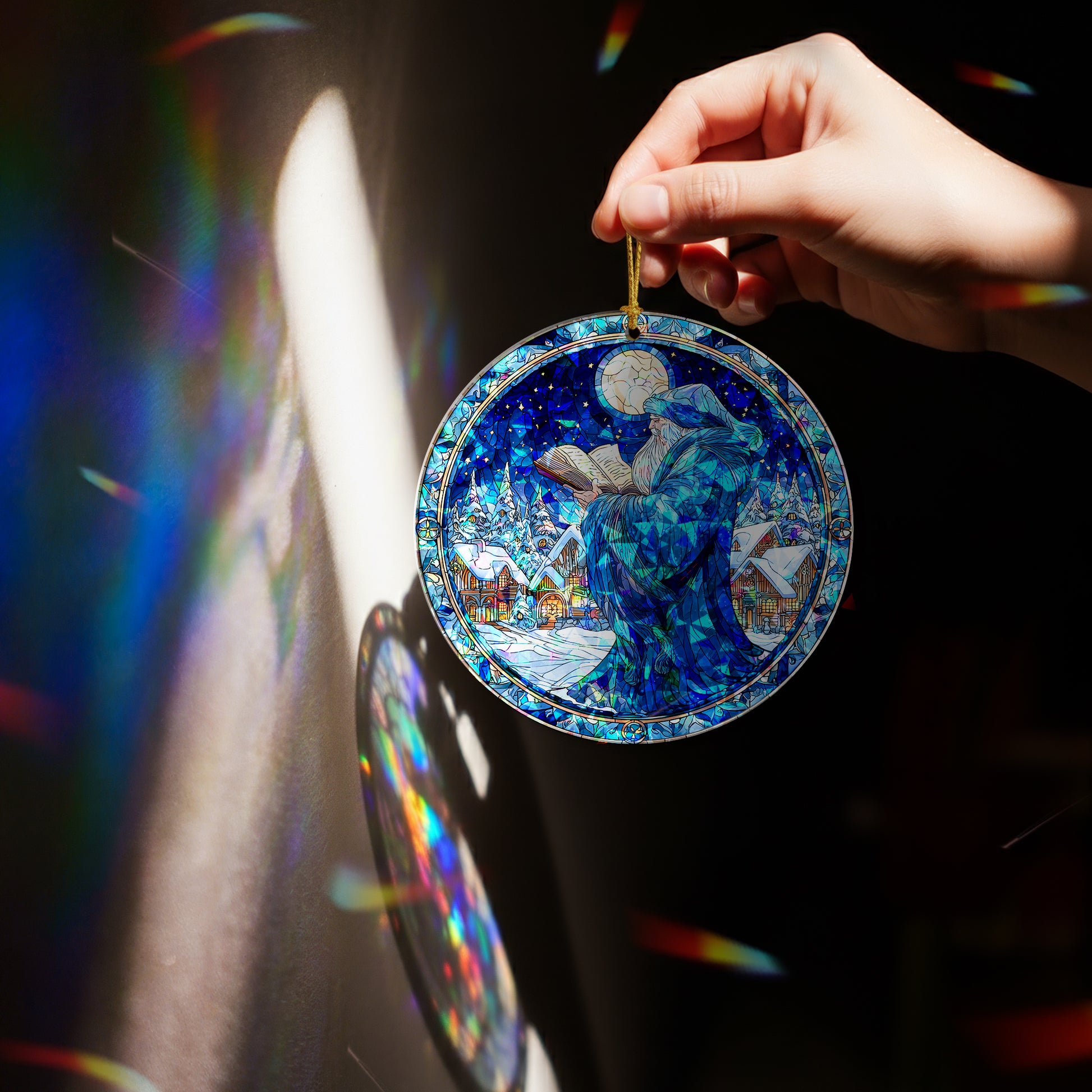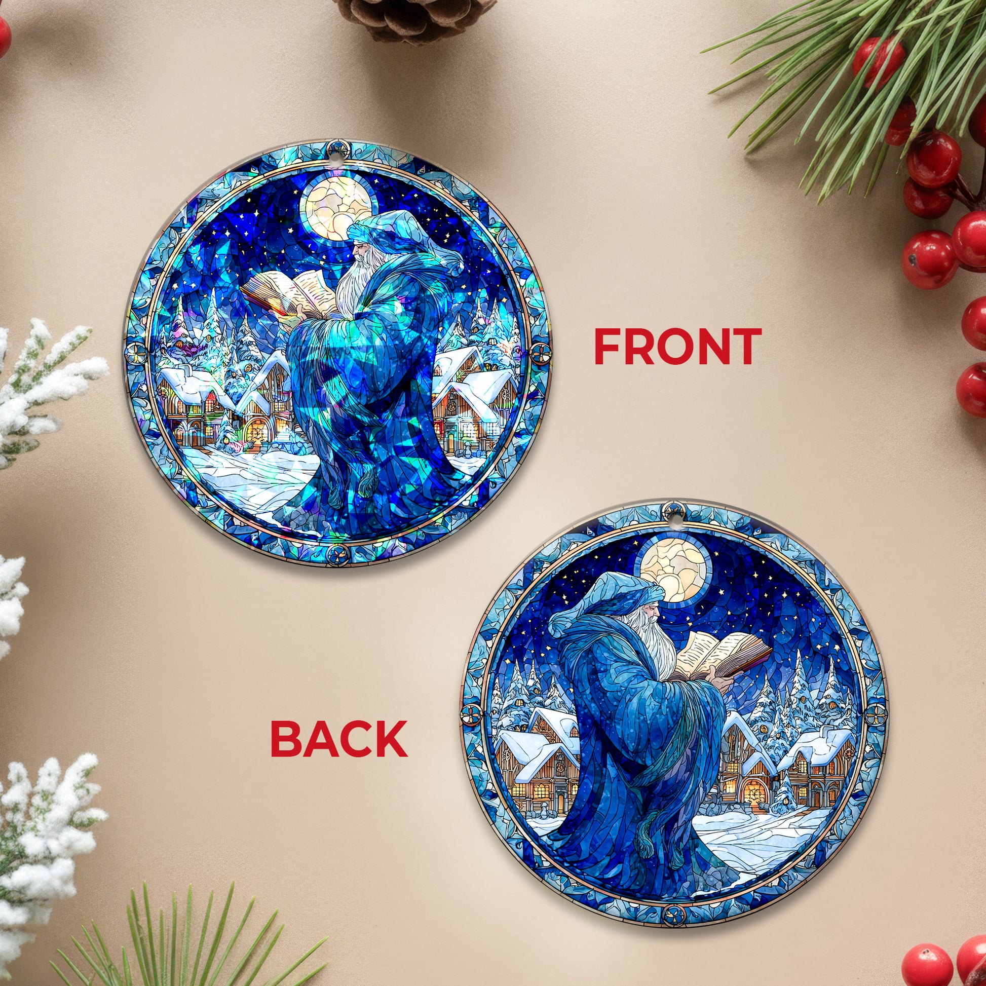 Stained Glass Storyteller Santa Holographic Christmas Ornament | Magical Holiday Keepsake | Festive Tree Decoration