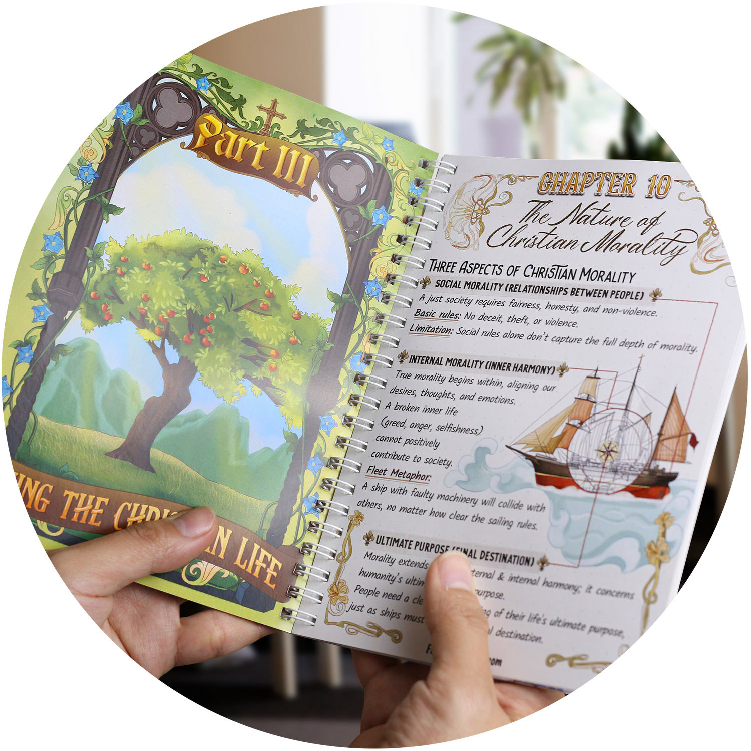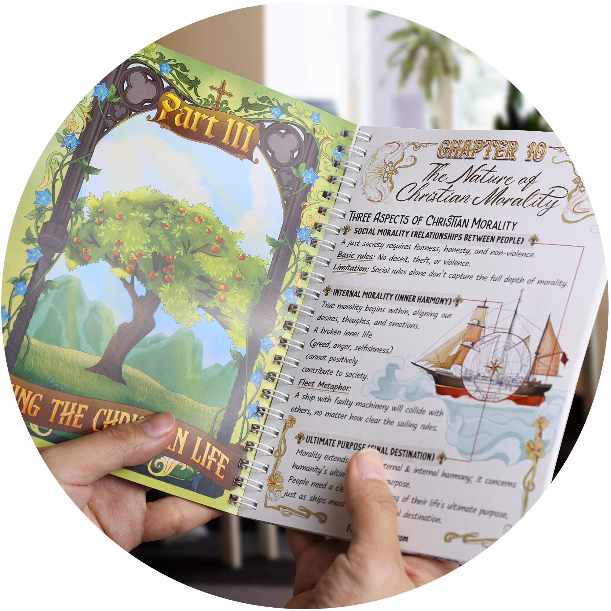 In Chapter 1, we illustrate the Natural Moral Law through a visual "moral compass" showing universal principles across cultures, contrasting scenarios that demonstrate moral intuition in action, and step-by-step visual reasoning that leads from moral awareness to divine source. We include practical application boxes connecting theory to everyday decisions. Readers report that this visualization helps them not only understand the concept but also explain it confidently to others.