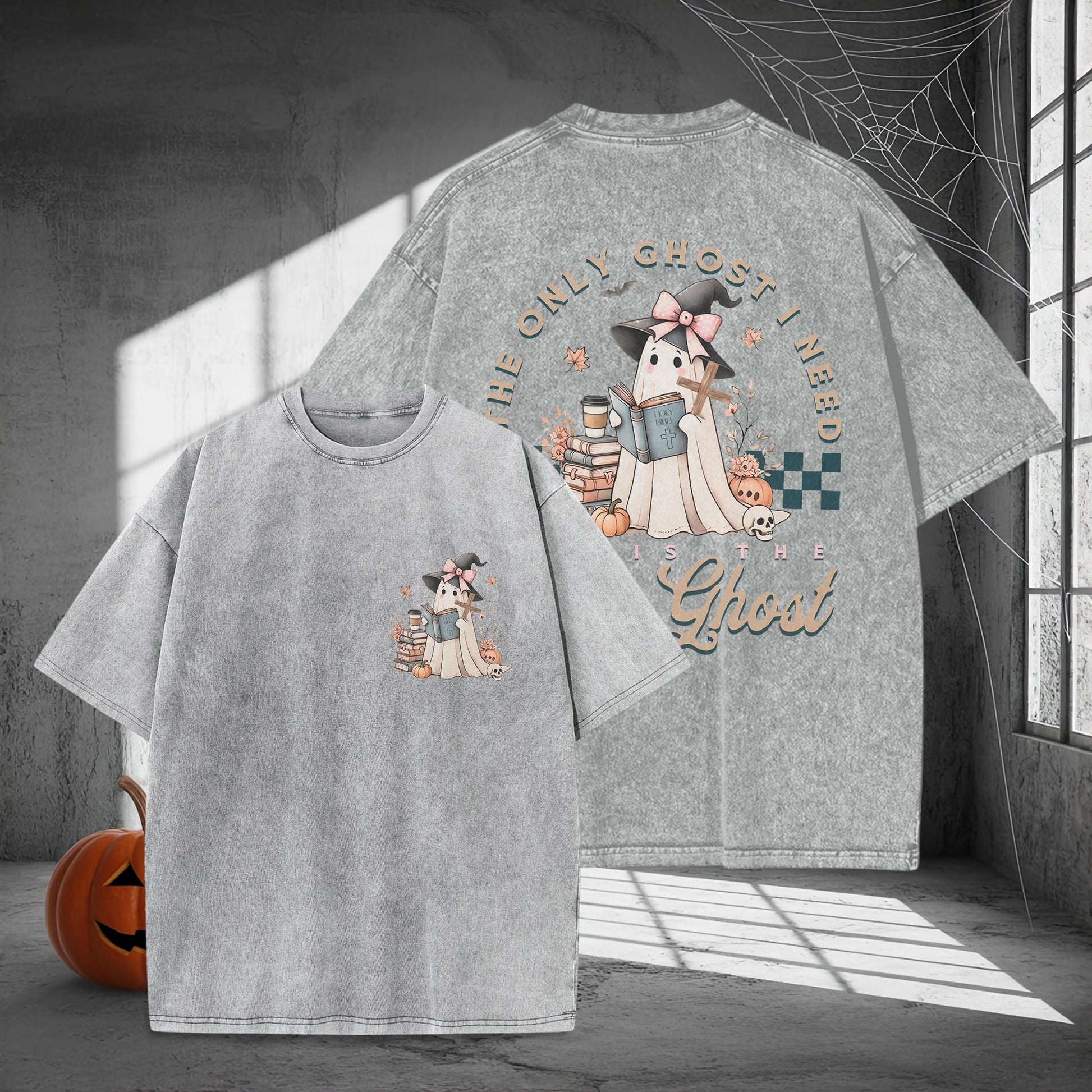Celebrate your love for cozy autumn nights and good books with our "The Only Ghost I Need Is The Ghost" Washed T-Shirt that perfectly captures the magic of fall reading season! This premium 100% cotton tee features a perfectly aged black wash finish and showcases an absolutely adorable ghost wearing a sweet pink bow, completely absorbed in reading a book while surrounded by towering stacks of novels, a steaming coffee cup, festive pumpkins, and beautiful autumn flowers that create the ultimate cozy reading sanctuary. The charming design appears both as a delicate chest print and a stunning back statement with elegant circular typography and checkered pattern accents that add a touch of vintage charm to this bookish masterpiece. The soft, breathable 100% cotton construction combined with the vintage washed finish creates that perfect lived-in comfort that's ideal for those long reading sessions, bookstore browsing adventures, or cozy coffee shop afternoons when the autumn air calls for your favorite sweater and a captivating story. Perfect for the bibliophile who finds more thrills in plot twists than jump scares, prefers the company of fictional characters over party crowds, or believes that the most magical Halloween nights are spent curled up with a hot drink and a spine-tingling mystery novel, this comfortable washed tee serves as both a celebration of literary passion and a gentle reminder that sometimes the only ghost you need is the one that lives between the pages of your favorite book, whispering stories that transport you to worlds far more enchanting than any haunted house could ever be.