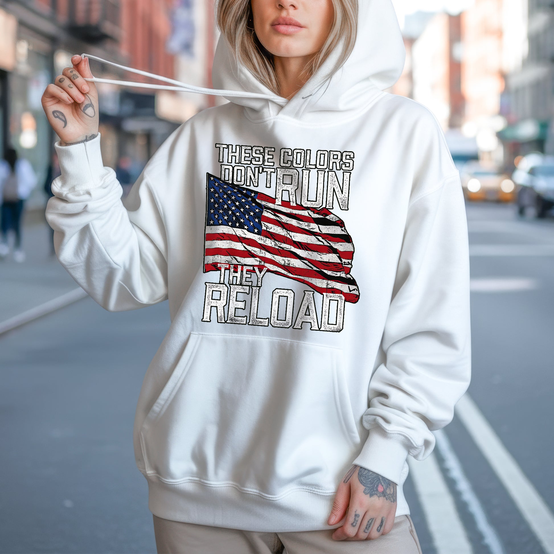 Celebrate American resilience and strength with this striking t-shirt, featuring a distressed USA flag and the bold statement "These Colors Don't Run, They Reload." Designed for patriots, military enthusiasts, and proud firearm supporters, this shirt showcases unwavering spirit and readiness to defend freedom. Perfect for Independence Day, veterans, or anyone who stands for faith, country, and the Second Amendment. Wear it to inspire courage and honor America's heritage every day.
