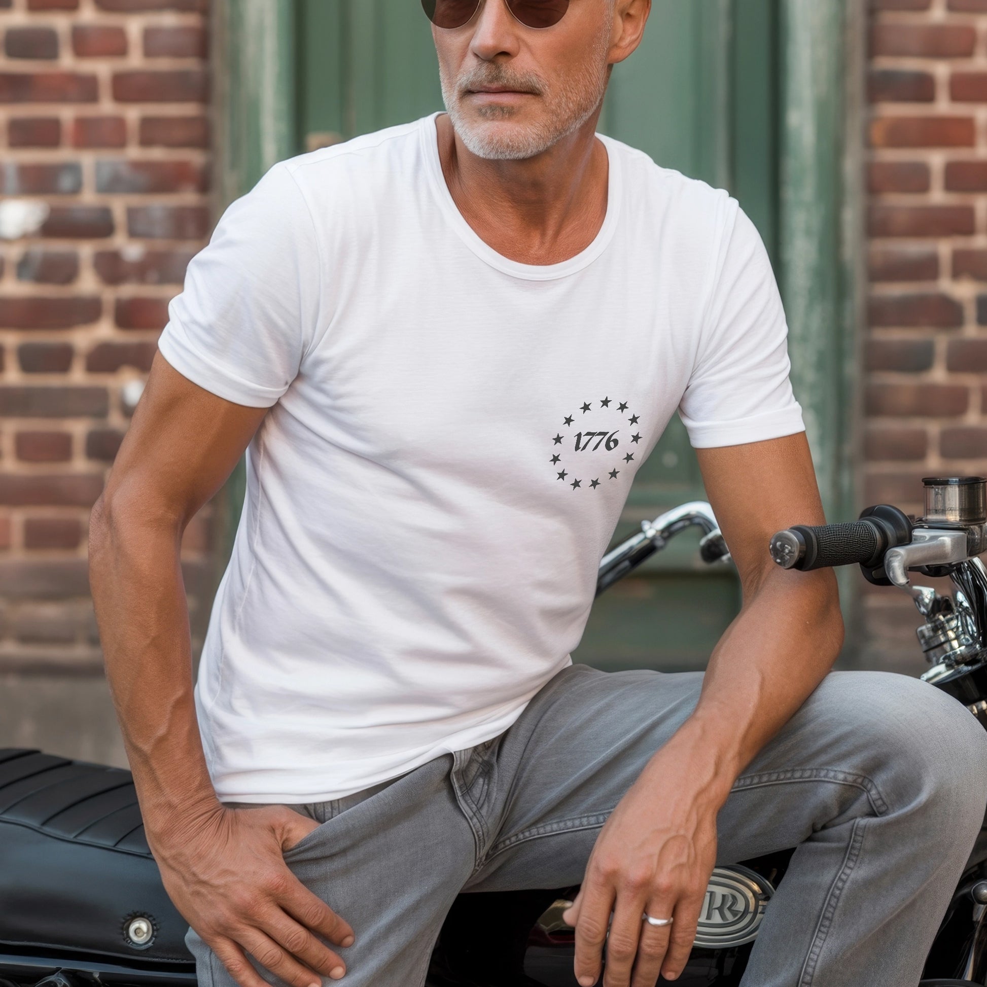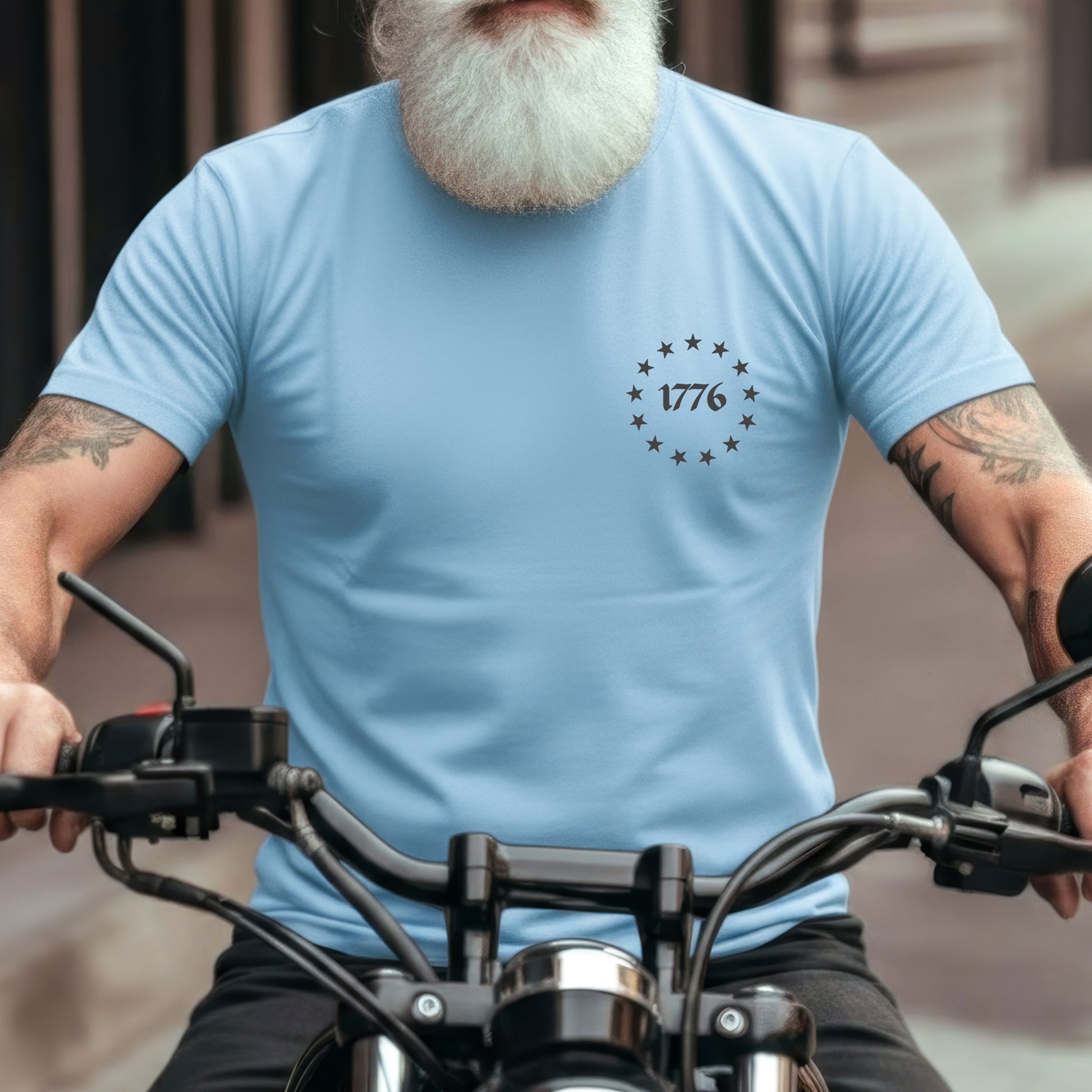Show your patriotic spirit with the "This Is My Pride Flag – 1776" Patriotic T-Shirt. Featuring a classic 1776 emblem printed on the front and a bold distressed American flag graphic with a powerful statement on the back, this shirt combines heritage, freedom, and pride. Made from soft, high-quality cotton, it delivers comfort and standout style, making it perfect for everyday wear, patriotic events, or as a meaningful gift.