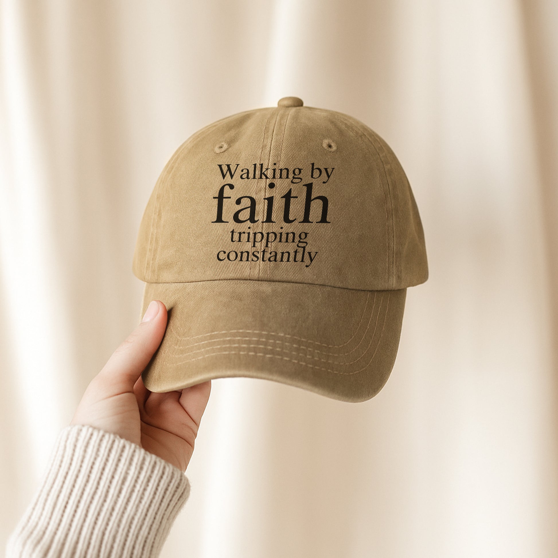 The baseball cap has become a popular fashion accessory and is suitable for all ages and genders. This humorous Christian-themed cap features the relatable message "Walking by faith tripping constantly," perfect for believers who appreciate honest faith with a touch of humor. It's a refreshing take on the Christian journey that acknowledges our human imperfections while celebrating our faith walk. This cap is comfortable, stylish, versatile and perfect for your casual outfits while sharing a smile and your beliefs. This is the perfect gift for anyone with a sense of humor about their faith journey, suitable for all occasions: birthdays, holidays, anniversaries, graduations, church events, Bible study groups, and just because! Whether for friends, family, church members, or that special someone who appreciates authentic faith expressions, this meaningful and funny gift is guaranteed to bring joy, laughter, and make lasting memories.